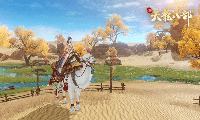 《新天龙八部》手游8月29日公测倒计时8天,小誉要放大招啦!敬告新天龙的各位互联网股东,熟悉的0元购又来了! 梦回敦煌 湛蓝的苍穹之下,金灿灿的胡杨树林尽染秋色,随着劲风婆娑起舞,给苍凉茫茫的大漠戈壁增添了几分神秘斑斓的色彩。身穿异域风情服饰的少女骑着骆驼,跋涉穿越了千年时空。这是敦煌,这是大梦飞天的敦煌。 眼前的场景将我们带回到了端游时期的敦煌沙漠,仿佛听到了重重叠叠的驼铃声响,又看到漫天黄