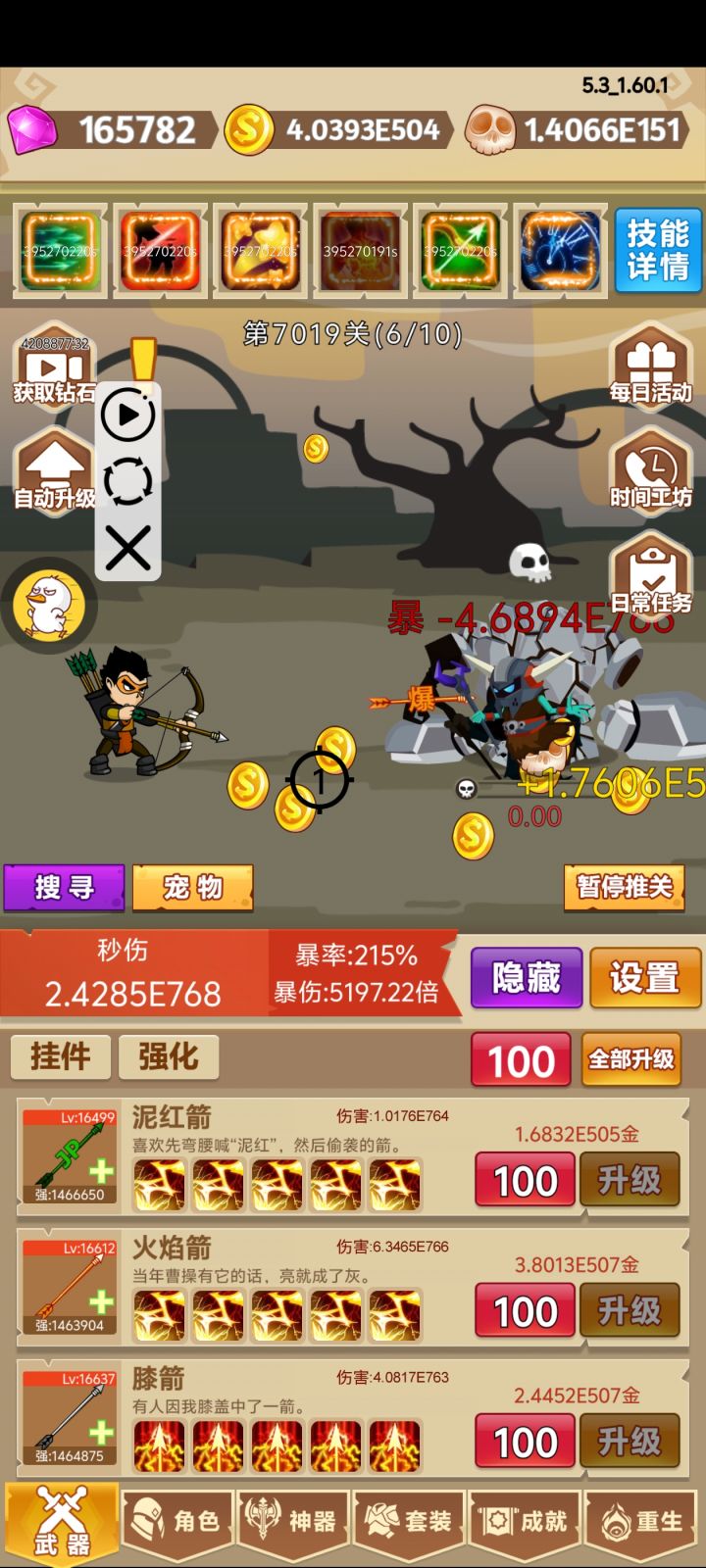 说白了就是广告奖励看完武器啥的自动升级,然后重生完就可以下线了,等8个小时10个小时的再上。游戏还可以,前期要点的多,一直升级基本上点到差不多2w次就不用再点了,希望出个离线自动挂到最高关卡,游戏元素较少。个人感觉游戏里的各种谐音梗是最大的亮点了,内涵值点满,希望能更新更多有意思的东西吧!同时期待尽早加入账号系统,今天模拟器出问题,玩了三天的数据全没了,存档啥的都没了,等账号系统出了再接着玩吧,加油!但是,同元素的东西如果只是单纯的累加慢慢的也就没意义了。因为提升效果不显著了,螃蟹战争和点杀泰坦等出台了竞技系统,想参加的就得转生,这样略微显得不会枯燥。设计的精巧不在于一开始多么爽快,而在于数值设定的巧妙,玩家感受到压力的时候,能稍微努力就能越过障碍,这样的熟悉游戏,更深刻,而且是要大部分都能非常明确知道的,总有压力,总有能翻越的障碍,也就总会有人行动了。