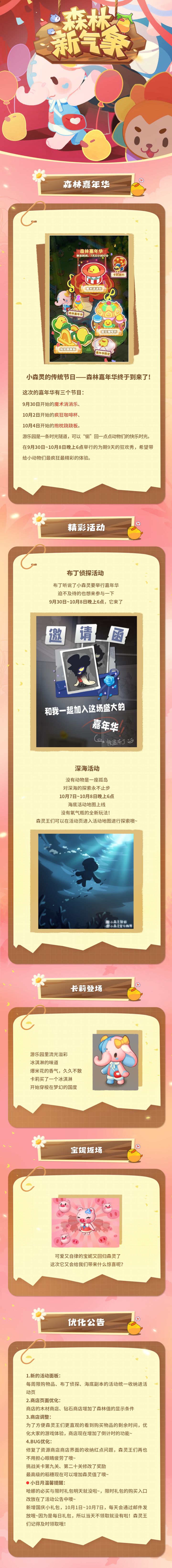 9月25日【踏秋测试】正式开始啦~小日月在小森灵里等着大家哦٩(๑>◡<๑)۶(文章末尾的小彩蛋森灵王也不要错过哦~)本次【踏秋测试】时间为9月25日10:00——10月8日18:00,请各位森灵王合理安排时间,快乐享受游戏~同时跟随着开服公告一起的还有我们的攻略征集帖和“踏秋送礼”活动,为了让初来乍到的森灵王们能够有更好的游戏体验,小日月决定向有着丰富森林建设经验的“熟练的森灵王”们征集游戏