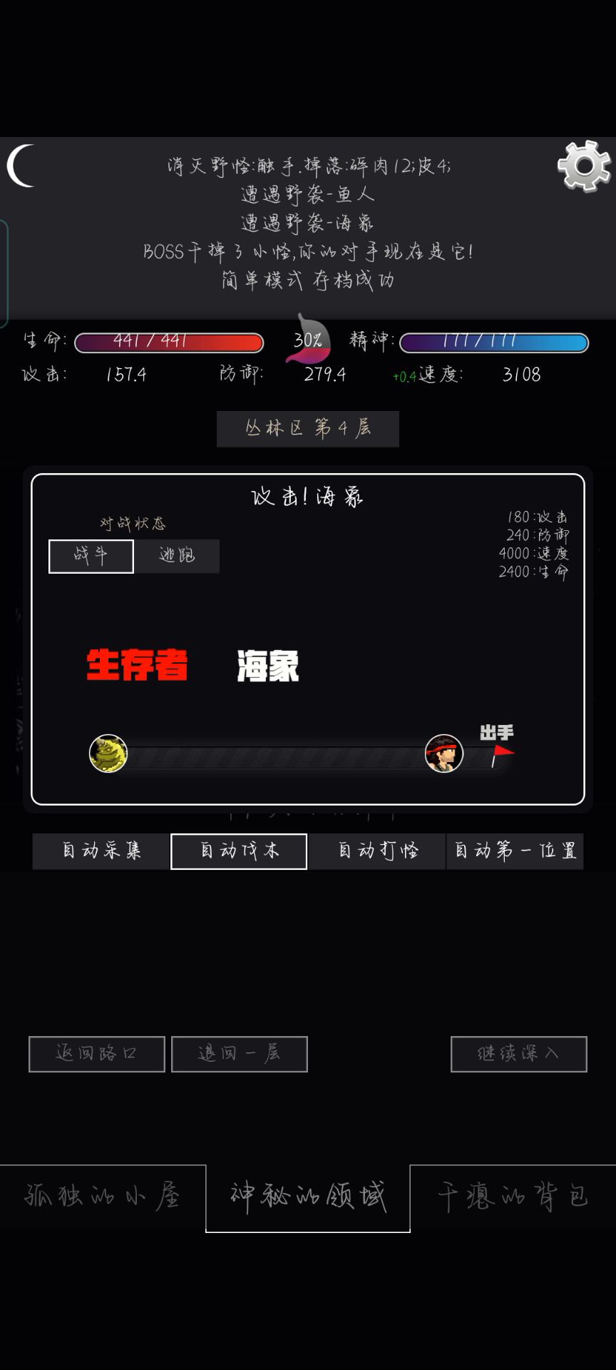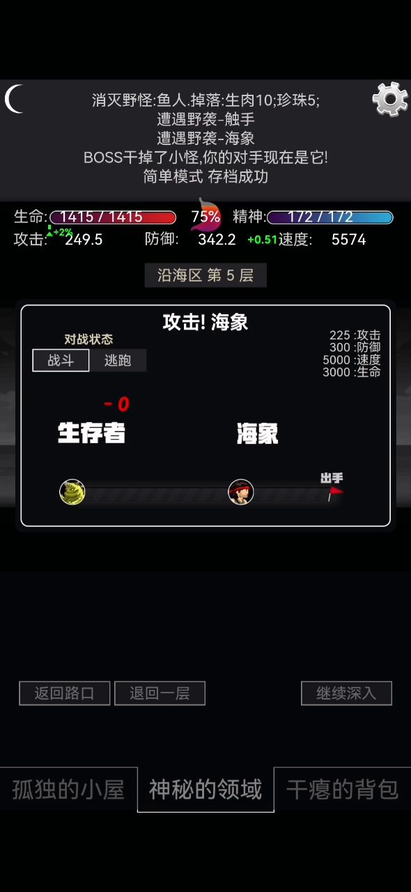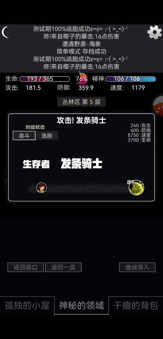 这个海象很尴尬,它无法破我的防,我也无法破它的防,就只能选择逃跑,但是现在只有测试版才能百分百逃跑。 等到后续版本,逃跑的几率不是百分百了,有没有一种可能,有一些非酋,死活逃跑不了,也破不了防? 兄弟们有没有好建议的,跟作者说说,我这边时间不够了,马上要去团日活动了😇😇😇😇😇😇😇