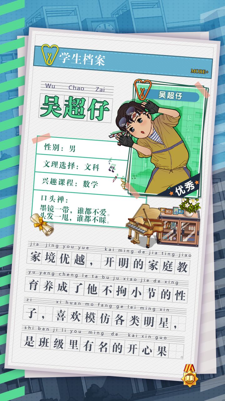 作为学校的经营者,不仅要需要考虑招募品质各异的教学老师、培养各色学生等等多种因素,最重要的是布局校园设施、进行课题挑战,宣传扩张,雇人提升老师技能,参加知识大赛..... 游戏操作简单,可随时拿起随时放下,非常适合杀掉无聊的通勤时间;丰厚的玩家福利,拯救各种频临破产的学校,给你前所未有的校园经营体验! 举办“知识大赛”、“名师讲座”、“运动会”等各种丰富校园活动,这是学生交友的好机会! 根据学生的