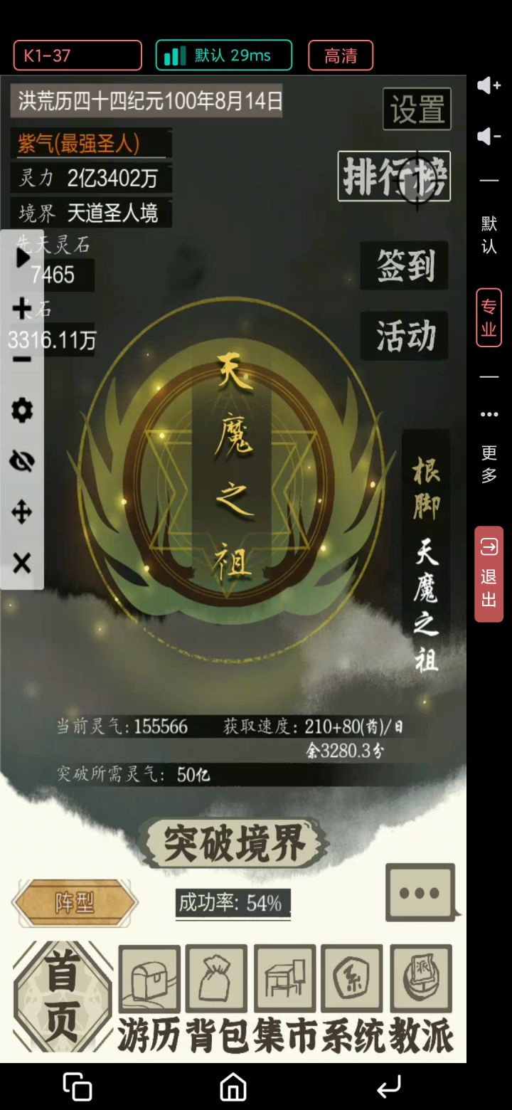哦,对了,由于红色和紫色的伙伴在前期不好养,但是蓝色的伙伴还是比较好培养的(指提升本源度)我强烈推荐培养蓝色伙伴孙悟空,因为他基础数值好,跟脚好,速度快,神通释放几率大且稳定。在天地机缘中对单体boss的伤害十分优秀。在pvp和pve中能单点秒杀对面c位,真是不负齐天大圣之名。(你问我同样是单体,为啥罗睺不行,1.未来短时间成长性为0,六阶涨一点本源度要500功德,有那个功德我不多搞几个法宝,开几个红色请神令,吃几颗修炼速度丹药它不香吗?2.神通几率低,才10%,我得看多少广告才能让他放个大啊。)还有一个小技巧,天地机缘有些boss,可以少上几个伙伴(甚至单上),因为这版本放技能还会占用秒数,酱油多,主C输出的次数就变少了,可以根据情况调整上阵人数。