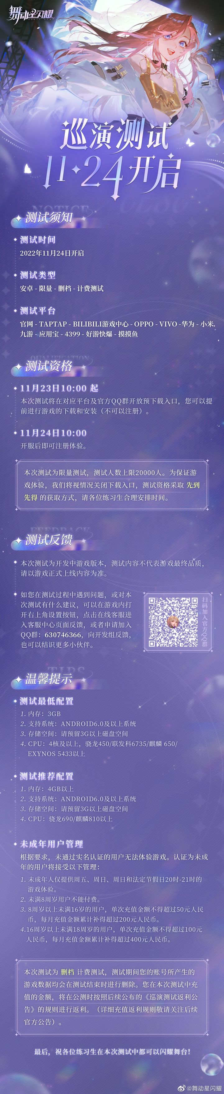 不知道的宝子看这里: 这次是付费删档测试,这次苹果不支持哦,因为这次不ios主要还是因为苹果的一些test flight政策问题! 这次付费删档测试定在24号10:00正式开服,23号官方群里会发安装包可以预下载,等24号10:00开服就可以正式玩了 喔😎😎QQ官方群:这次不知道哪里下载的宝子们加下面的官方群喔!😛😛[一个就可以啦]616599506【官方四群】715939653【官方二群】630746366【官方一群】741858426 【官方三群】围脖搜索: 舞动星闪耀超话 ks:搜索舞动星闪耀 ks号:5340143dy:搜舞动星闪耀dy号:46526860222tap:搜索舞动星闪耀【360166081】tap:小舞id:365034028tap:舞酱id:362265250客服小舞:id:411904574哔哩哔哩:搜舞动星闪耀UID:1874480688