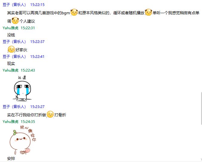 刚才我们的作曲师答应打骨折价帮我们作曲,非常感谢。下次更新会有更多曲目了。
