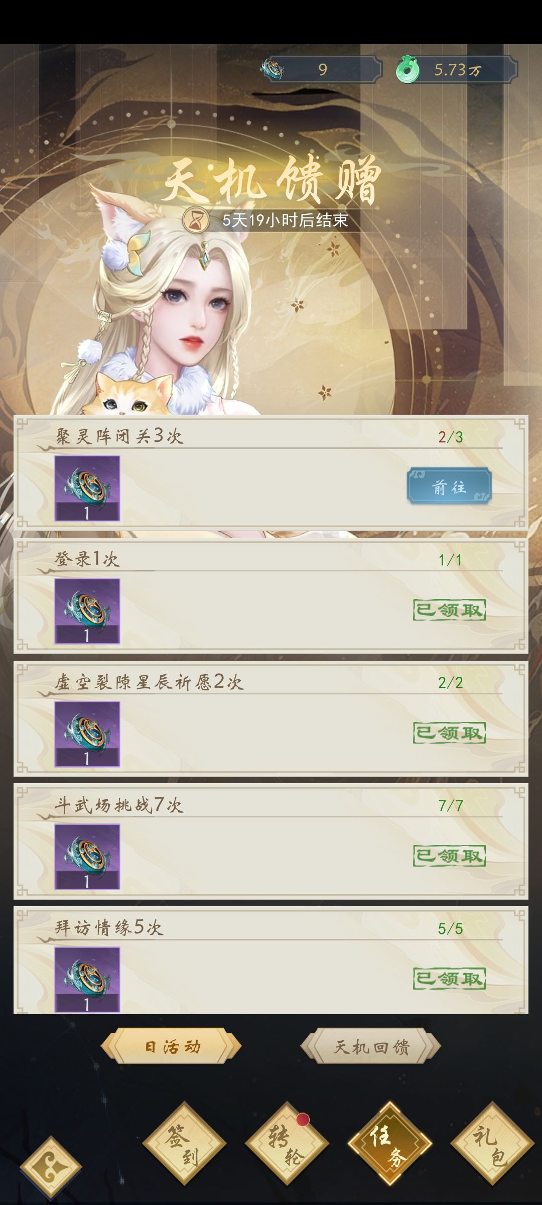 书接上回,上次写到周活动,这次补一些昨天没写的。 一·月活动 月活动分为两个,时间都已经定好了,一个是每个月1号的天机活动,一个是每个月15号新角色的天命活动。其中天机活动重要性极高极高,万氪巨佬以下一定要把握住抽帝星的机会。 《天机活动》抽卡道具为天机令 每日任务可以拿10个,每天刷新,一定拿满。 签到可以拿30个,每天免费一次,免费礼包每天一个,每天用2000玉可以抽10次,一定要抽,一定要攒