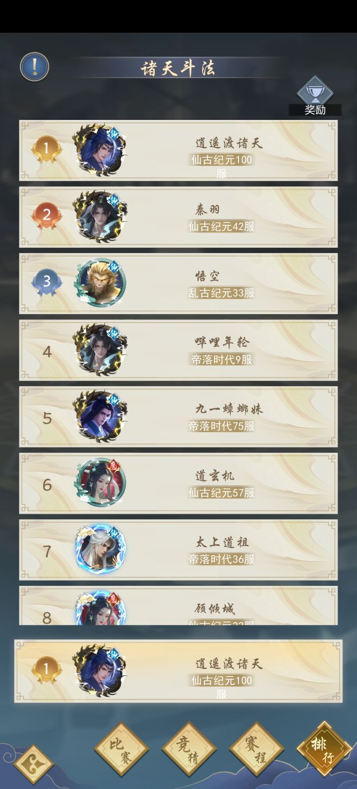 前言——《辰东群侠传》诸天斗法活动史上最强逆袭,2.33兆战力(ID:凤鸣贯九霄)连克一个2.7兆(ID:宙一子)、两个2.9兆(ID:方飞雪;ID:以遗忘为名)诸天斗法其他氪佬参赛者:ID:龙吟破苍穹(战力2.6兆?)——前中期圣墟纪元守护者、七七大神的转世。ID:时间道祖(战力2.54兆)——投注杀手,经常拉胯,堪称辰东版国足,大家记住他,下注反买,别墅靠海。ID:昆仑(战力2.41
