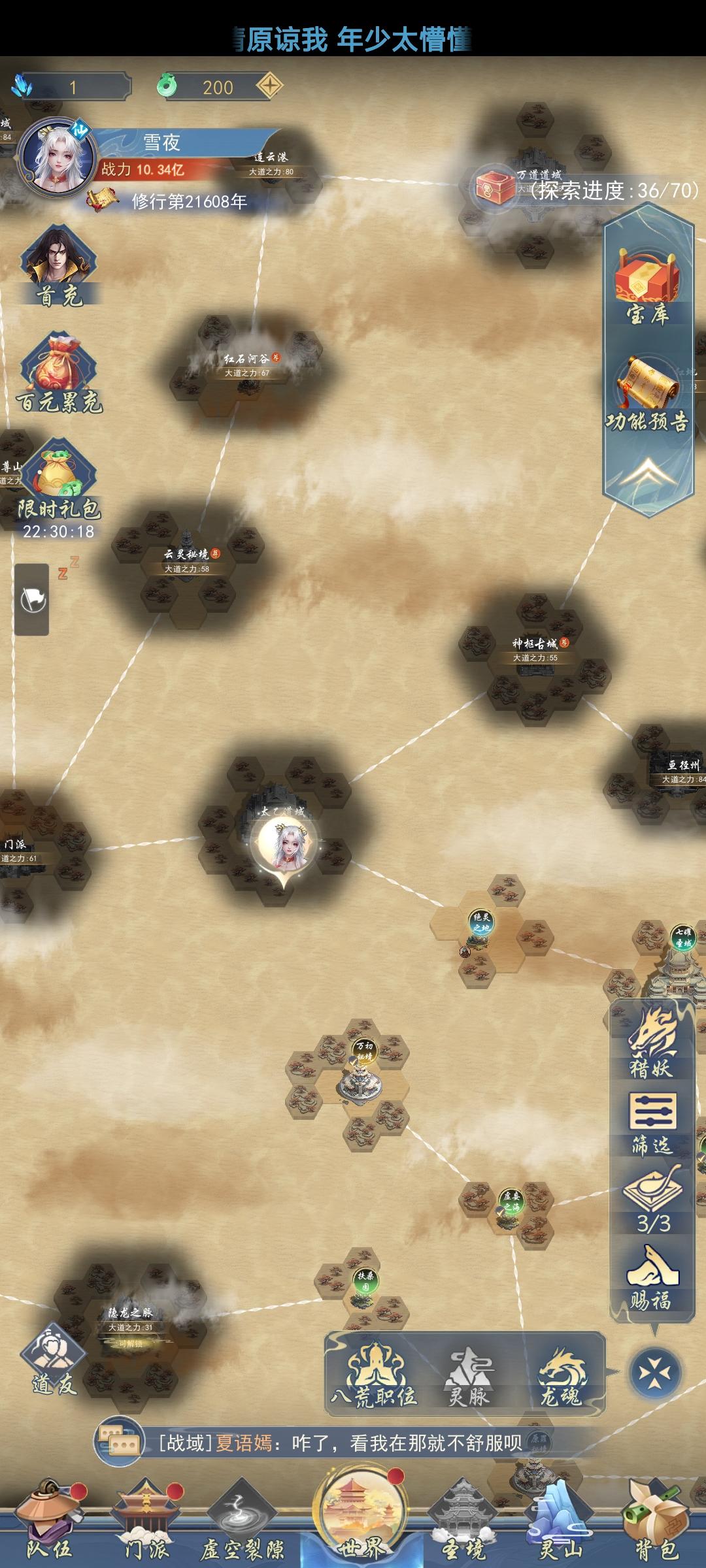 关于新区玩法白嫖档不用说了妖妖开局首推队伍,妖妖,林轮,不死天后,狠人,黄牛或黑牛推塔,开图,裂缝,前期搞道元,第一天开第三山,后面慢慢养成就好了主打陪伴和收菜氪金档不用多说,荒开局,队友跟上面差不多一样阵容,当然还有别的,可以进交流群荒天帝30星→林诺依.轮20星→安妙依20星→瑶池圣女20星>不死天后20星→段德看自身资源培养。不过魂元箱子只给段德后续优先不死天后25星→瑶池圣女25星