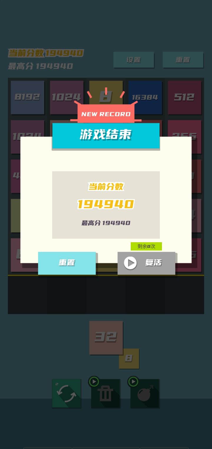 最终 只到了这个分数 两个32768合不起来