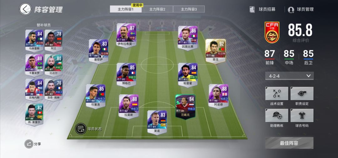 首先个人声明下,本人不是什么正经球迷,但是喜欢研究,尤其喜好卡牌游戏,所以我是把绿茵信仰当卡牌在玩的,主攻经理人模式,然后以下纯粹个人摸索,起抛砖引玉,不喜勿怪。 好了,闲话少叙,干货正式开始。 1.首充选择,笔者花巨资12元开局两个首充,分别选择了范巴斯滕和菲戈,结果在经理人模式,范胜率在50%以上,而菲,可能我用的菜,35%胜率,还有一个,没试,希望有人补充。 2.424阵容简直是万能阵容,尤