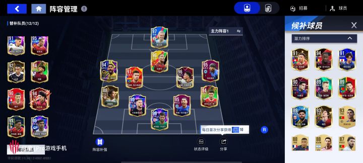 这个游戏是我对比fifa,最佳球会,实况几个游戏来说,福利最好的游戏,里面的蓝卷和各种抽奖券都可以免费获得,可以慢慢攒也可以试试能不能欧出来,我玩了一个月基本上也成型了,当然跟大佬还是比不了,但在最高球员只出到101,滚卡相对于fifa还是强太多了