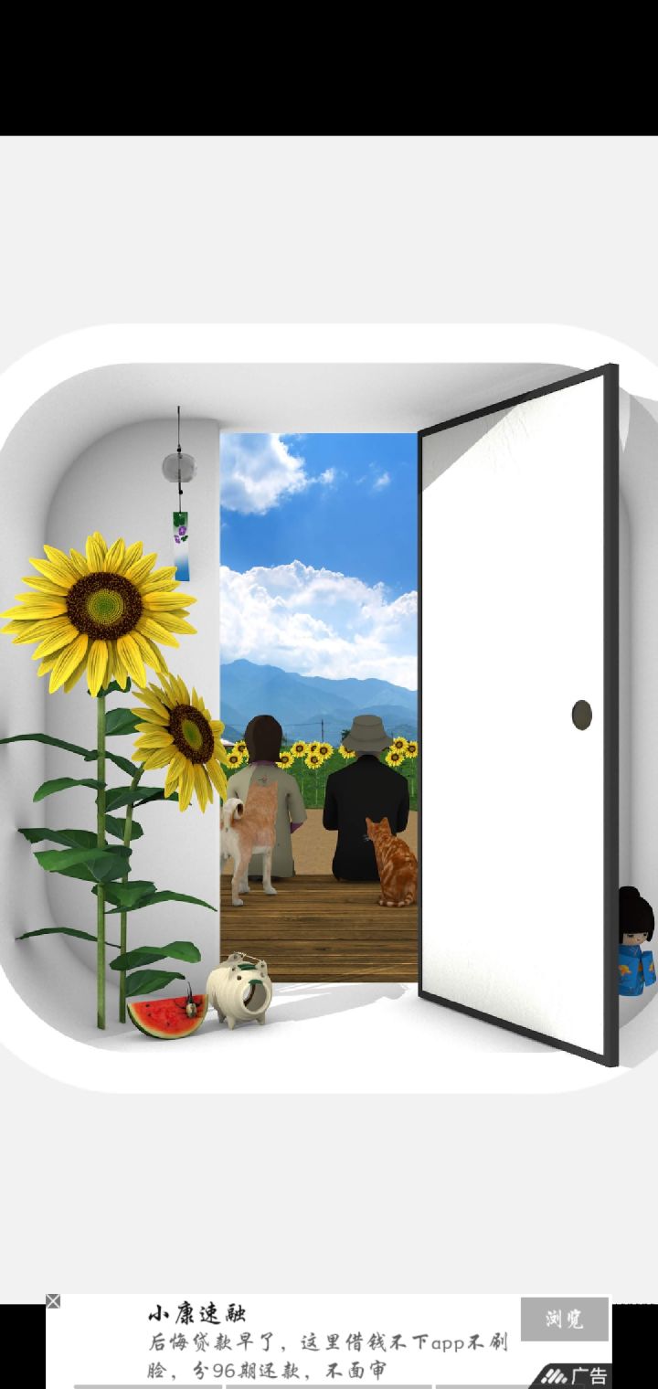 抄袭可耻,请勿抄袭开局左侧观察风铃摇动顺序得密码14234转至左侧纸箱画面地上纸猪1324解开局画面右侧柜子玩偶得蓝色人偶,柜子左侧用开局画面的风铃顺序解开得游戏卡带右转两次至狗狗所在画面右侧放上蓝色人偶,根据开局画面彩笔提示紫绿蓝黄红得刻刀,中间大柜子用纸箱画面墙上的日历绿4蓝7红24解开得螺丝刀,螺丝刀拧开开局画面电视机下柜子两侧的螺丝,打开左侧,把抽纸一张一张抽完(手指向上滑动)