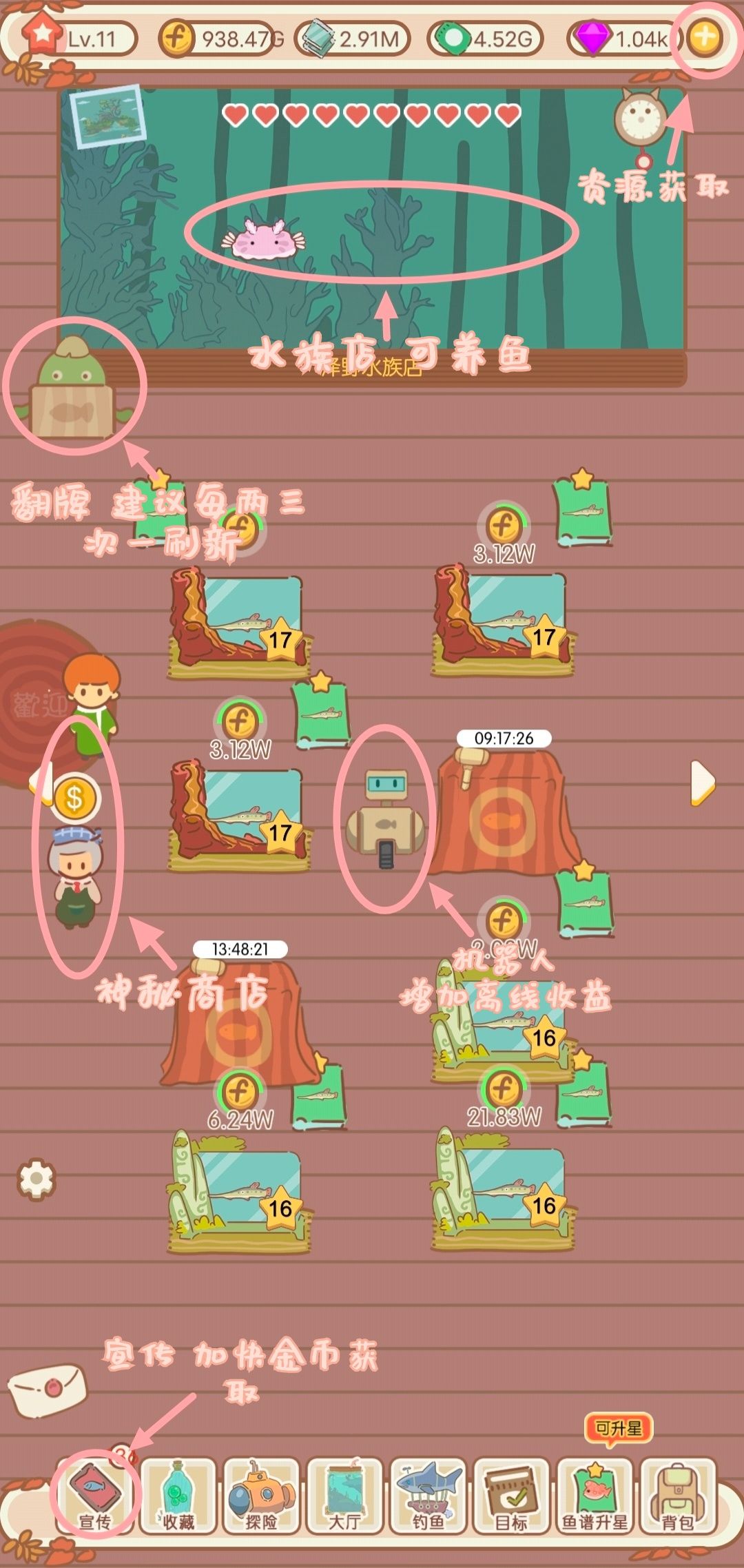 游戏主页:https://www.taptap.com/app/216147 水族物语是一款佛系休闲+模拟经营的游戏。 游戏中,你除了可以在各个地图探索选择垂钓地点, 收集各种各样鱼类品种, 也需要合理分配资金经营好水族店铺, 将收益做到最大化,并将其投资到潜艇装备中, 去探索更加未知的世界带回珍惜鱼类的资料, 一页一页完成你的人生目标……