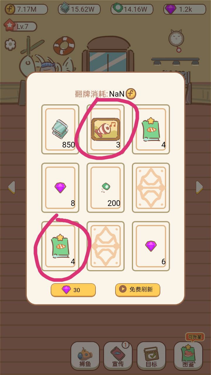 ④既然是水族物语,以捕鱼杀鱼这个点来获取新鱼种是不是有些不太妥,或许可以做成另一种形式来获取,比如深海探索发现之类的或者其他的,毕竟游戏整体还是一个治愈休闲的游戏,捕鱼这点还是不太能融进游戏大背景里的。