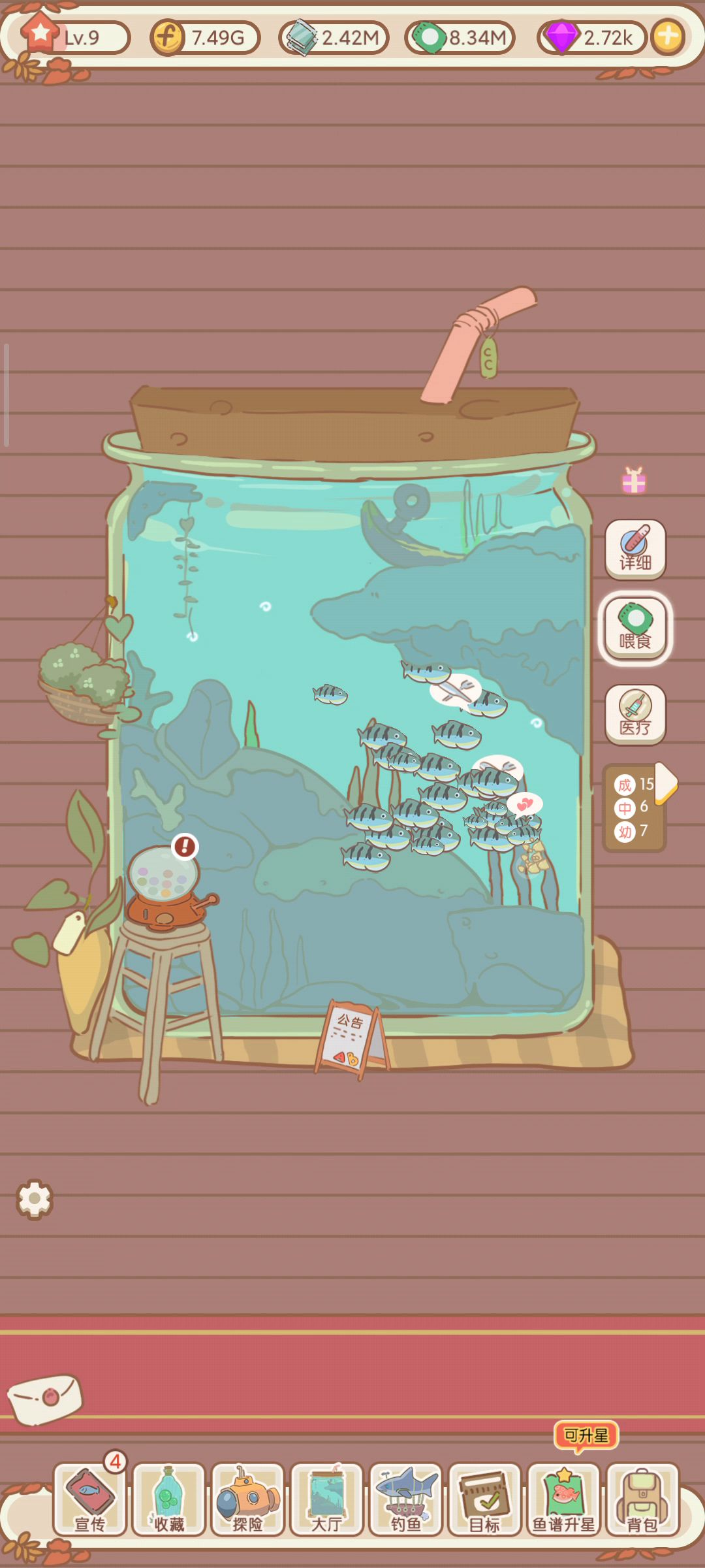 整理了一下游戏内玩家好奇的问题大鱼缸只能养小丑鱼吗?不是,可以刷新任务尝试饲养其他鱼自动补货机器人可以做什么?自动机器人是可以自动补充店铺鱼苗.这样不用手动补货什么是特殊鱼?特殊鱼是随机出现在地图上的鱼种,非常稀少.如果能打下来就可以捕捉到特殊的瓶子种孵化.那些瓶子是什么?据说瓶子是用来孵化特殊鱼的地方,也是一个收集货架.将会孵化特殊鱼.如何可以快速赚钱?这个有很多玩家交流,据