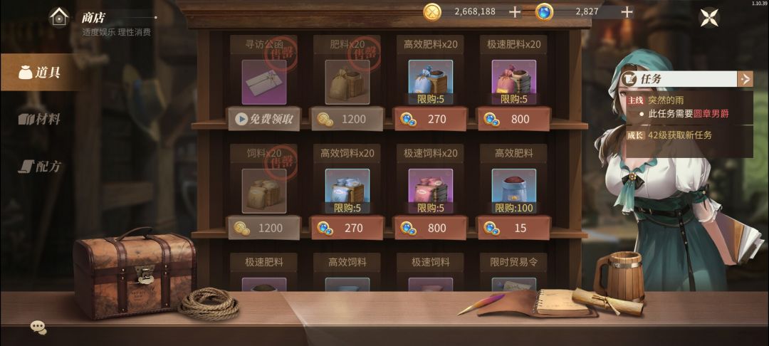 本人小氪,帖子只是记录庄园每天完成的小任务,谨防自己忘记[表情_大笑],特别是刚玩的小伙伴,一定记得完成哦 [表情_比心]商店 1.寻访卡(看视频免费获得) 2.肥料,饲料,初级狗粮(金币买完) 3.锤子,炸弹(不限制数量,随时买就行) [表情_比心]每日活跃 做完,一定做完, 寻访2次那个,1次免费,还有一次就单抽,任务奖励也是一张寻访函,不亏!上次单抽出奇迹,抽到了德里安。 这个任务我总是忘记