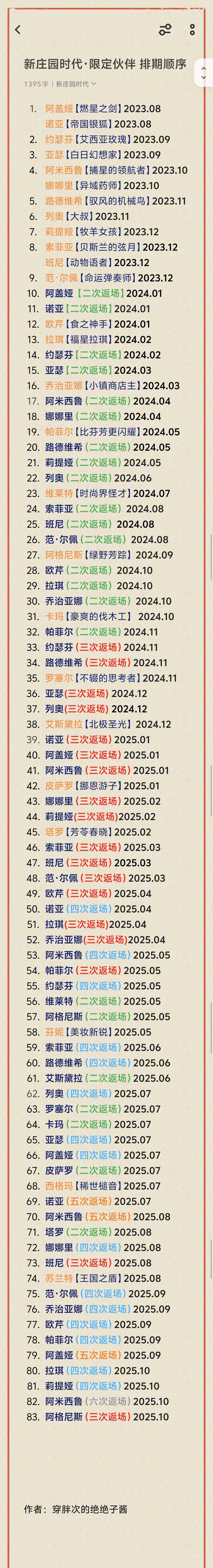 应小伙伴要求出一个简易的钻石攻略,给萌新们做一个参考。 参加活动换各种证的情况下每天还是能攒几百钻石的[表情_送花] 而且各种活动以及周常排名等都会给钻石,所以综合情况下一周是可以攒不少钻的。 至于花钻石就要根据活动奖励来判断,农牧场加成/航海产量等藏品或皮肤比较重要,这类活动优先参加。 而伙伴方面选择则是根据个人需求,T0级别人权卡就是图里那几个,其他只是下位替代或委任工具人。 #新庄园时代 #