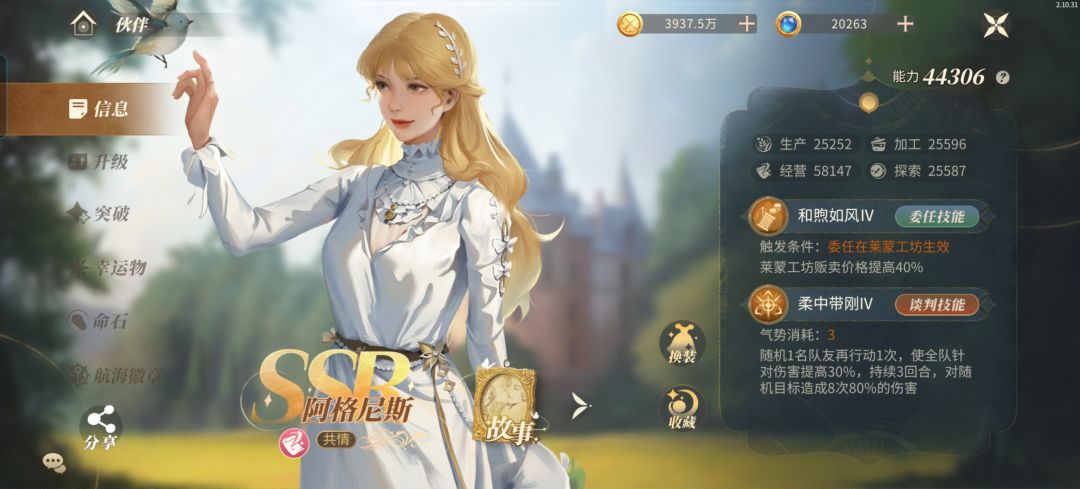 1.图1伙伴能力旁边的问号可以点开,查看伙伴的属性能力等等。 2.图2与图3查看对应属性,命石也应对应属性,这样才会有属性加成。 3.图4升星与强化命石(即合成与洗练)可以提升命石能力(橙色条最高),从而提升伙伴能力。 4.图5左边商战:每天3次,每周六天,周日结算(而商会世界订单周一结算);右边寻宝,每天2次。 #新庄园时代攻略 #新庄园时代 #新庄园时代攻略