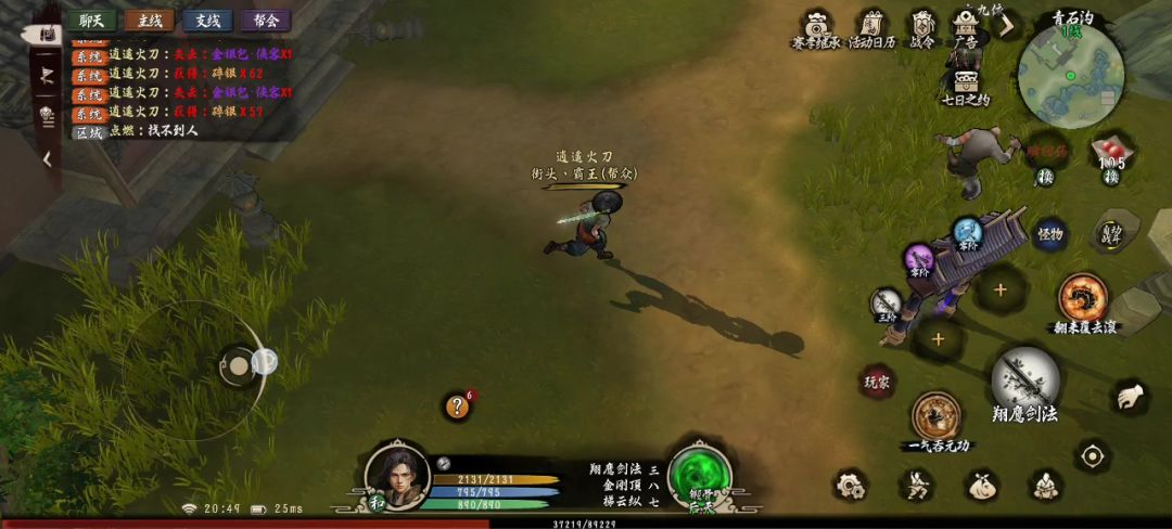 进到无双城 走完任务送了几件没用的绿装以后 不知道干嘛了 野外打不过 前面的又没有好东西