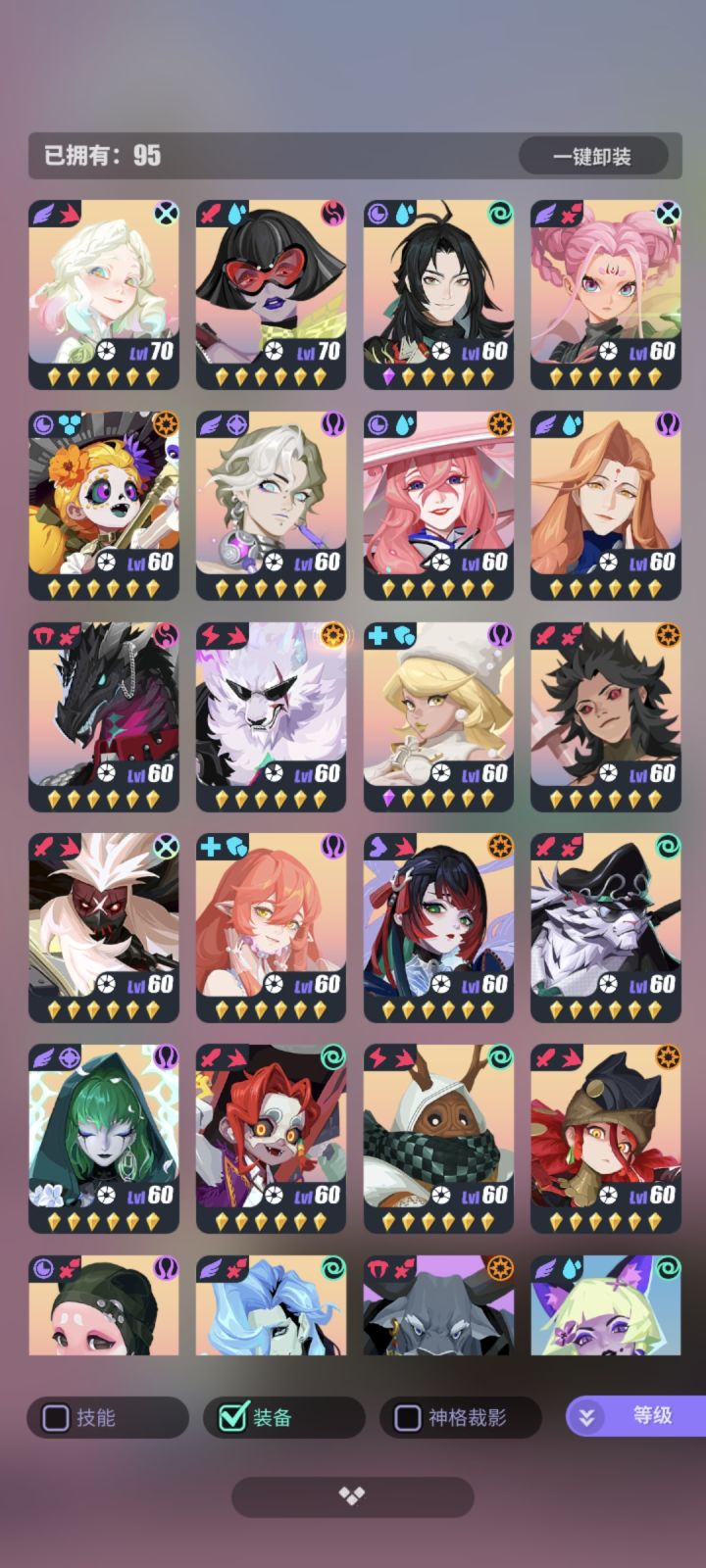 (对了被神吹的逼岸花,不对孟婆只养到了50级,紫卡我就拉了牛牛用牛牛的禁疗打蛇本和主线一些特别的禁疗关卡,蓝卡只拉开猫娘到60级。你如果只刷经验本的话逼岸花拉到50就OK了。)