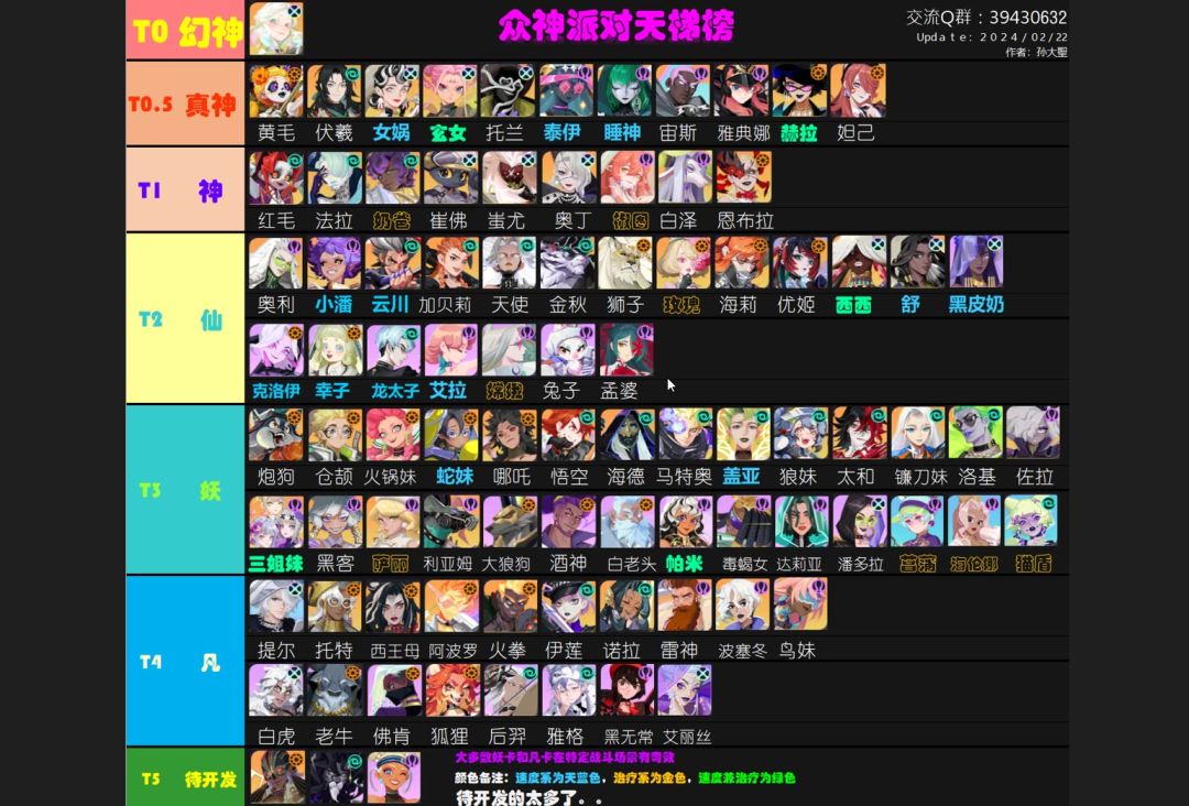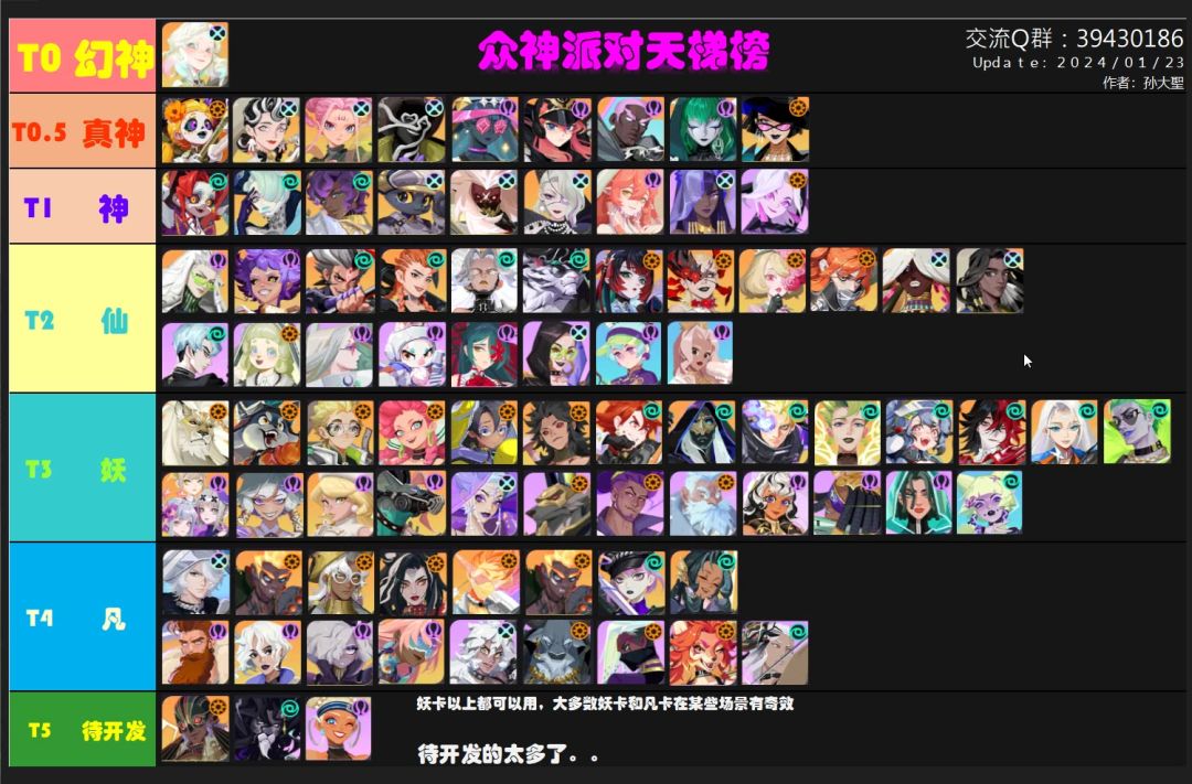 2024新卡牌游戏&众神派对天梯榜&众神派对角色强度排行。 本视频是考虑到众神派对目前已经公测,但是很多新手玩家找不到比较完整实时好用的天梯榜图,导致没有方向,于2024年01月21日特别制作的一张目前游戏最全的一张天梯榜图。 关于开服怎么选英雄可参考我另一篇攻略,内含最新英雄天梯强度榜 当然可能有些英雄的排行,大家有异议的,可以留言一起交流,也可以进Q群交流,希望多多理解制作上的一些疏忽吧。纯属