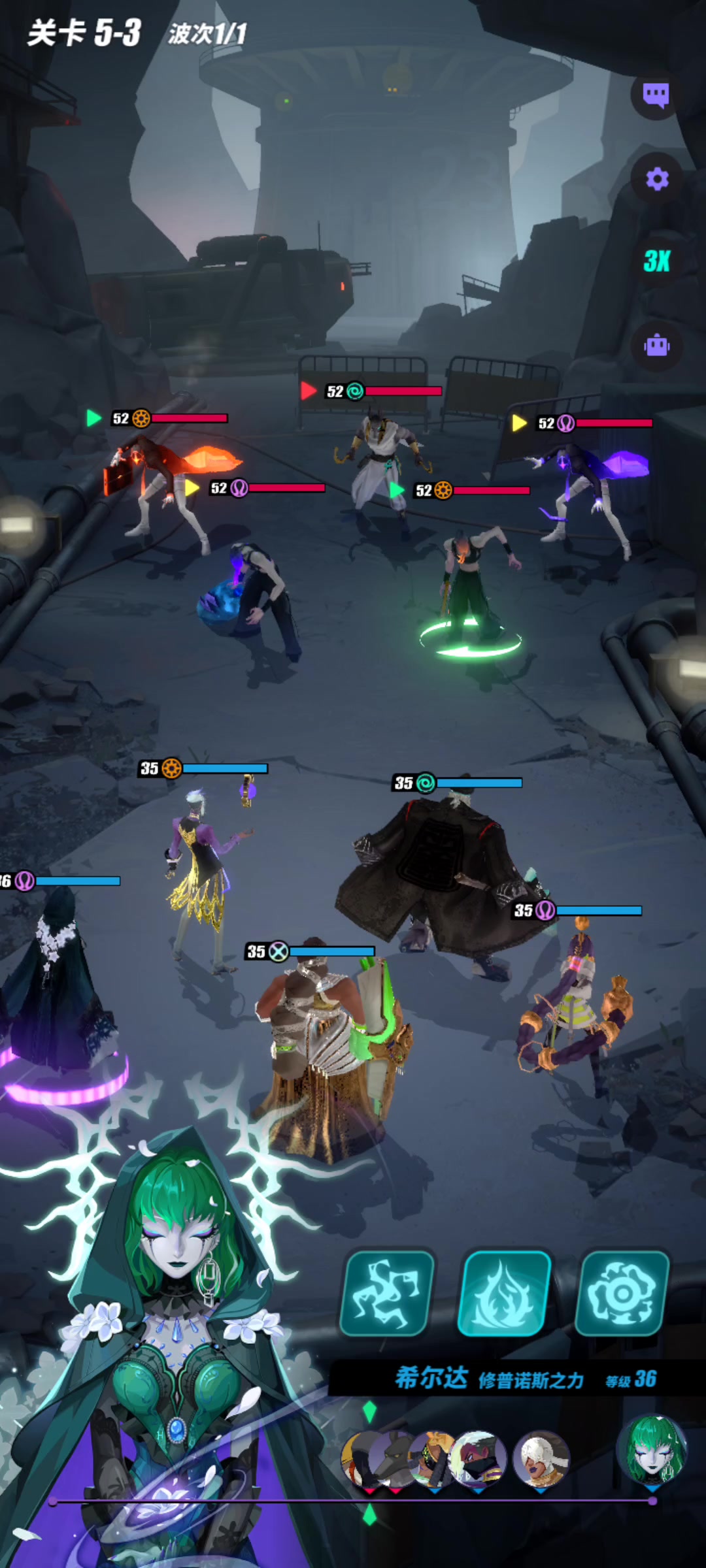 从练度和回合数可以看出,无论暴击追击流还是真伤流,都比不过希尔达和姜曼的毒流队 第一队:核心是伏羲和炮狗,炮狗练度低主要用来触发伏羲追击,然后恩布拉上印记,伏羲触发。 第二队:玄女和蚩尤的真伤队,输出点位少,单点输出不够,有点拉。 第三队:练度低,只有希尔达一个60级0共0专,其他都是50级,主要靠毒和触发姜曼被动,是三队中最不吃经济,也是最快的。#游戏攻略#众神派对