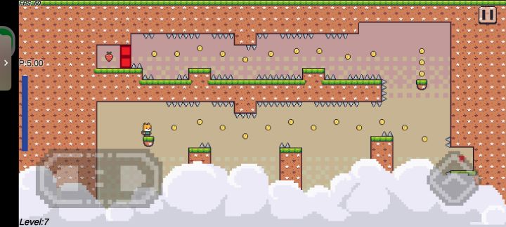 比如说图二第7关,在飞行键旁边那个小红点我刚开始玩的时候根本没注意到,因为我直接就开始玩了没有看出口那里有一个红色的门。有一点是手放在飞行键上方挡住了,还有一点就是,这一关是第一个开始有开关的关卡,所以我也没想着要去看出口。是后面我玩的有点恼火了,然后把手拿来来看关卡,才突然看见飞行键旁边怎么有一个红点,然后才看见出口有一个红色的门😂