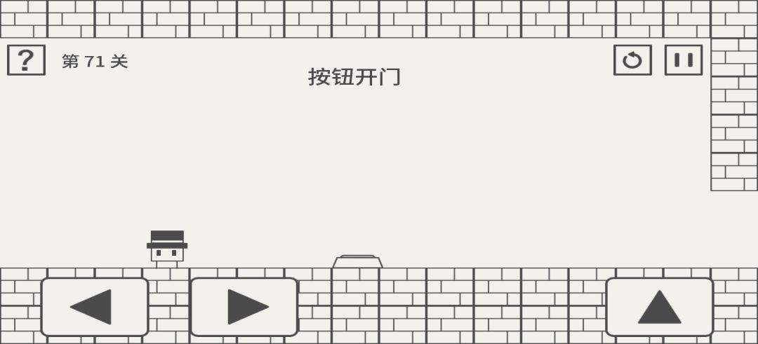 41.推箱子,帽子先生那里是暗格,钻进去能顶出来一个箱子 42.让手机"背朝天" 43.回33关,回头撞墙进密室,可以看到2333 44.字面意思,用手打"常规"三下 45.打开帮助面板,踩着过去 46.点悬崖边上,可以点出砖块 47.把手机转180° 48.字面意思,退出关卡再进就可以看到49关已经开了 假 装 这 里 有 张 图 49.用手指把帽子先生拽过去(记得拿钥匙) 50.输入当前时间(