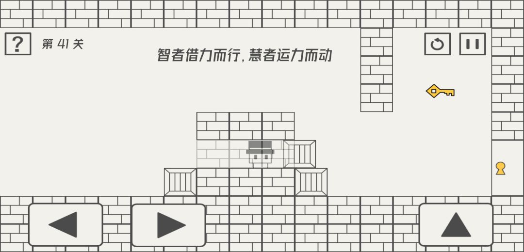 刚刚玩完41-50关。前面有一个大佬把前40关都整理了一遍(这样真的太好了叭),于是我也来当活雷锋啦,有错误的大家可以指出来😋 41 从中间可以穿墙而过,最后一个可以推到钥匙底下当垫脚石 42把手机倒扣到桌面就ok啦 43返回到33关根据箭头所指的房间里有密码(2333) 44点击“常规”二字三下就可以获得真钥匙 45打开帮助面板,利用帮助面板当做跳板过去(帮助面板就是左上角的那个问号) 46点击