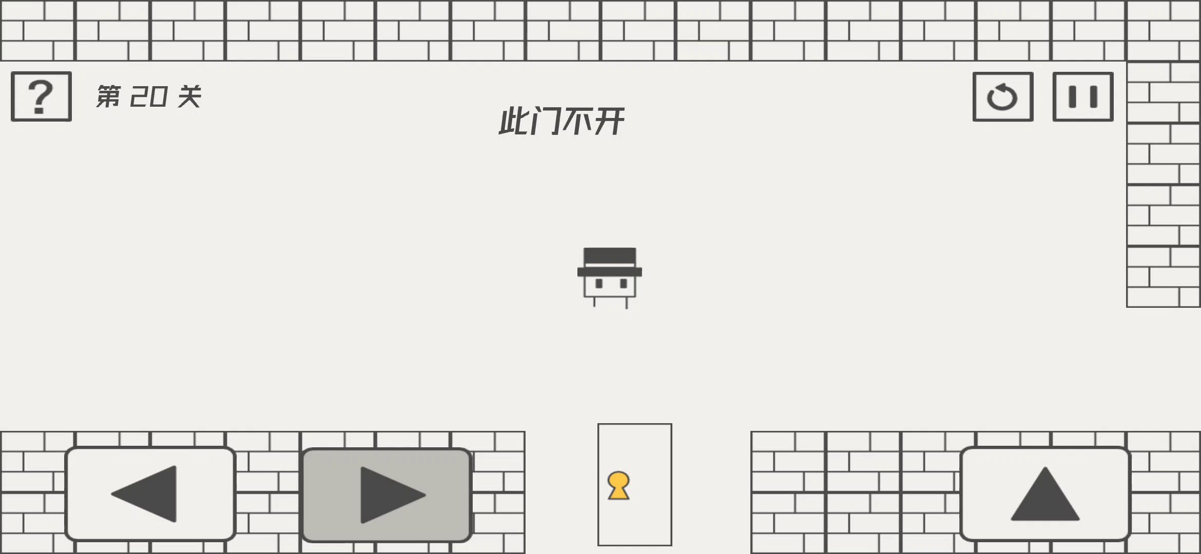 61前一关飞行模式这一关恢复连接62手机翻转180度63变大变小可移动64钥匙上的数字就是按键次数65地面可移动66悄悄的进村快快的不要67手动缩放68总有垫脚石可移动69薛定谔的帽子先生,用手挡住小人看不见就不会出事!70手机亮度调暗!71手动按按钮72双击为你加速73使劲摇!一定要使劲!74右划下一页75当暂停按钮可以到处跑76按跳起跳77手动把帽子小人压扁,我