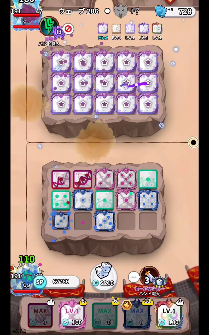 大家好,我是小千仞,昨天第一次接触随机点数大师这款游戏,玩了一会儿感觉非常魔性上头,就氪150拿了皇家特权和台风、成长两个骰子一开始自己摸索,带了两个成长和一个适应靠这套打到1200分,但是感觉战斗节奏非常看脸,有时候成长出高星适应或者初期成长失败非常拖节奏,一不小心就被对手一波带走。于是楼主改变策略,决定走前期路线,力求快速解决战斗,按照这个思路有了如下卡组:1.卡组分享楼主一开始用的