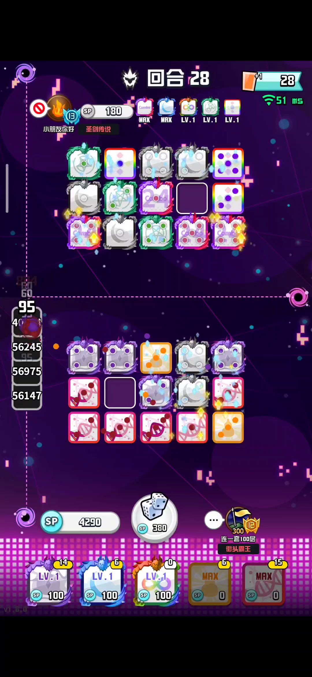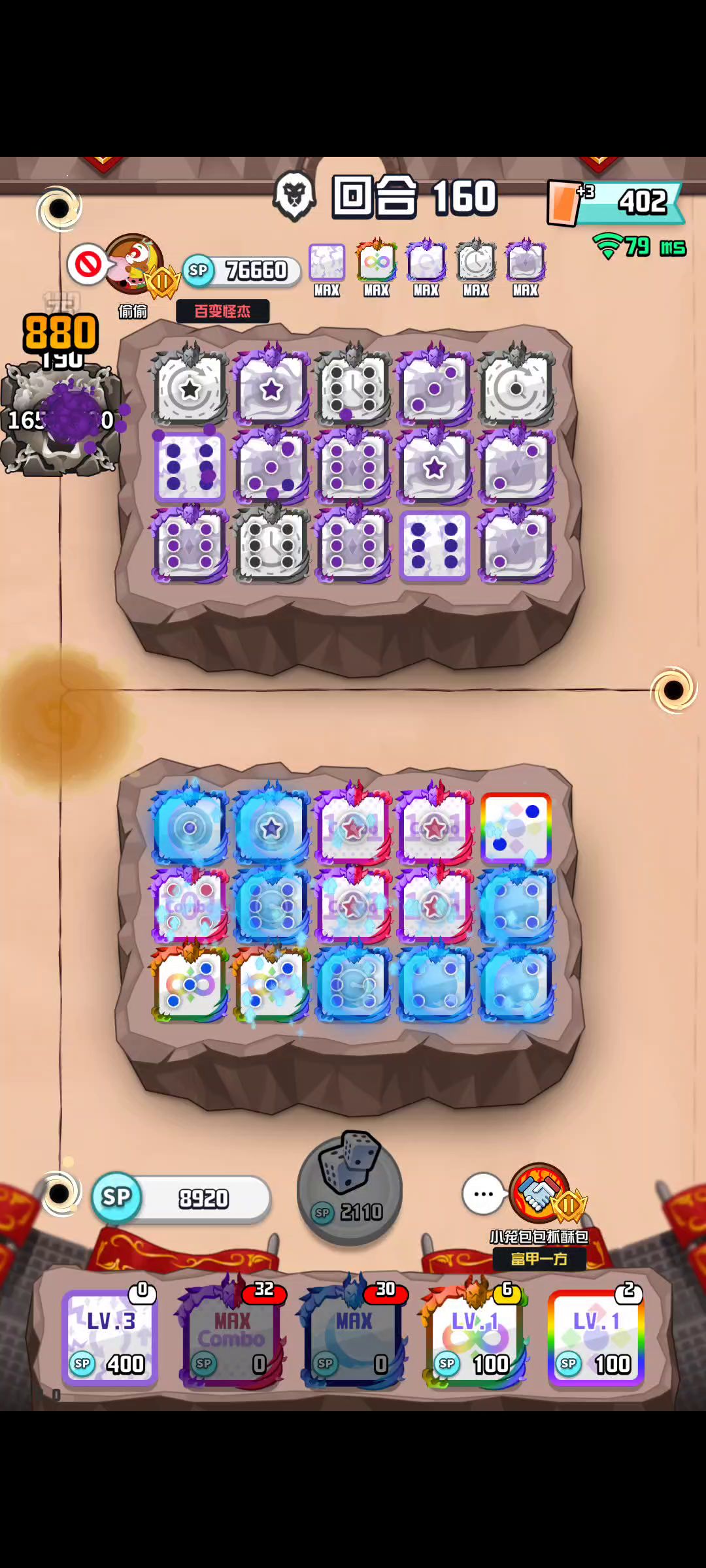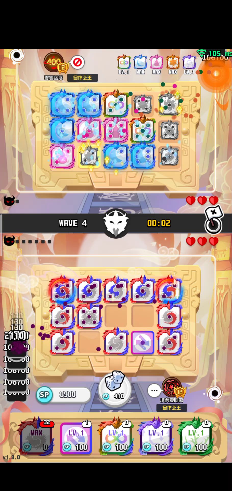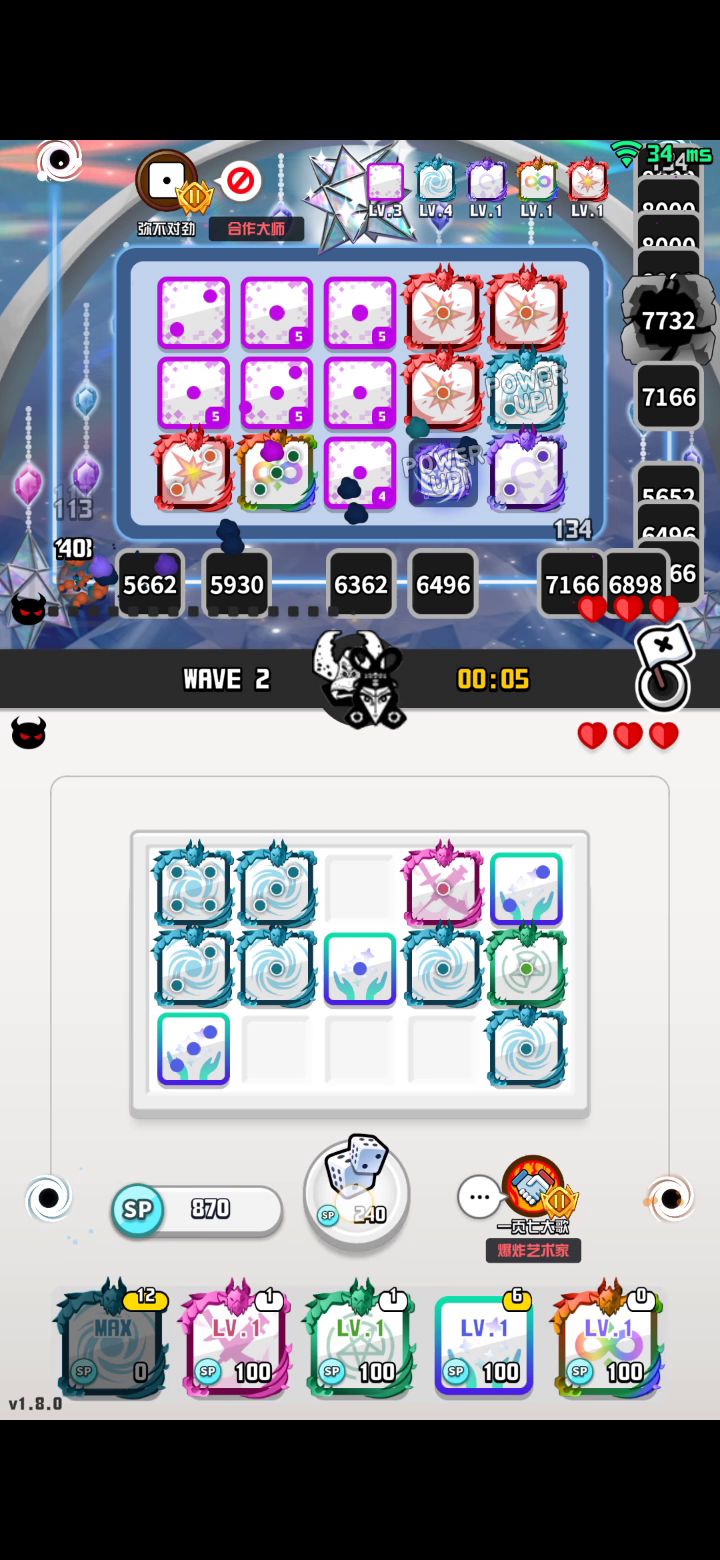 ID:50387283 【随机骑士】 特性:每隔一段时间将所有骰子任意转换成同星级的其他骰子。 【缄默小丑】 特性:每隔一定时间,会封锁住场上的随机两个方块,使其无法战斗,直到该首领消失。 应对策略:在战场上召唤出尽可能多的方块,可以有效降低该首领特殊能力的影响,在方块被全部封锁前击败它。 【魔术师】 特性:会循环施展三种特殊能力,分别为陨石(直接摧毁一个方块)、净化(清除异常状态)、治疗(恢复生命值)。 应对策略:需要眼疾手快。被陨石锁定的方块,是可以在被摧毁前与其他方块进行合并的。 【丛林之王】 特性:登场时,会随机将场上一半的方块降低一个点数,原先只有一点的方块将直接被摧毁。 应对策略:令人难以招架的首领,没有太好的应对手段。可以保留一定能量,在它释放完技能后迅速补充方块。