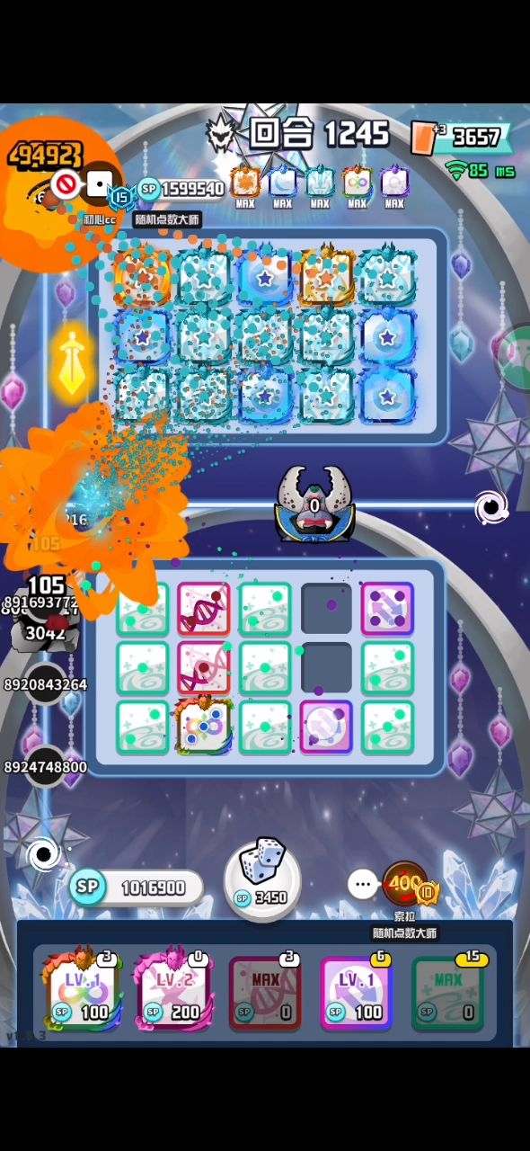 浅谈下“双原子”的运营思路先说下,我打主的合作模式大致分为3个阶段1~29 为发育阶段30~55 为准备阶段56+ 为战斗阶段那么何为发育阶段?主:连击>一切骰子副:满级裂痕>原子>裂痕>沙子>暴雪1.双方格子始终为铺满状态2.打副适量合成,前期不缺你那原子输出(你的沙雪减速反倒拖速,要存sp升裂痕)3.打主无脑合成连击,不要留原子(建议囤大量连击,先升级,再合成)(满