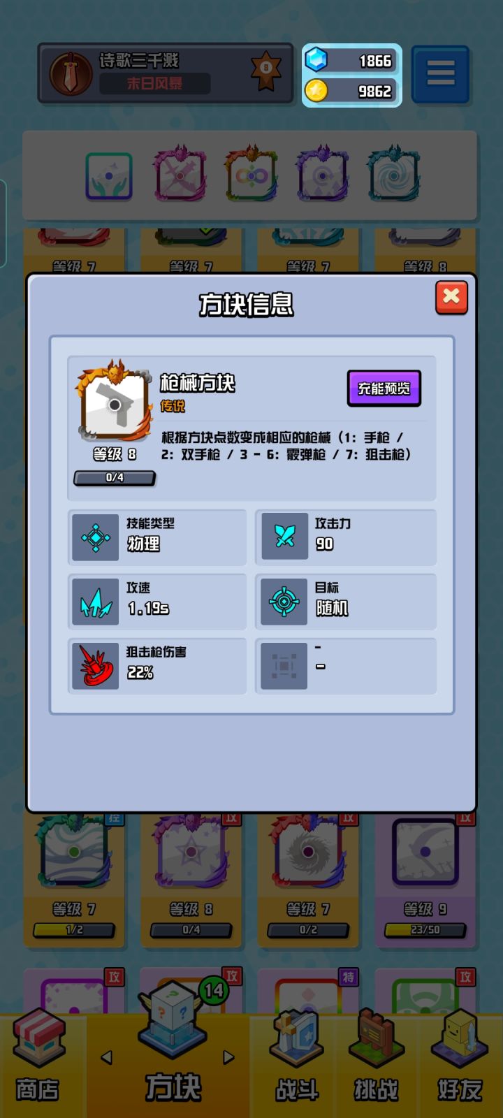 来了来了 窝是星仔 更新了 皇家方块 和随机成长方块 六套对战推荐 不要错过哦首先是新骰子解析 正篇在下面哦先看一下皇家方块 :局外升级增加攻击力 局内升级也同样是直接攻击力 没有特殊效果 可以在前期增加一点容错率我们看一下随机成长方块:可以看到局内升级减速成长时间 局外升级也减少成长时间,但是发现没有,他的攻击力只有10,而且不做增加,前期容错率很低,并且15级满级,和充能满级后还会有