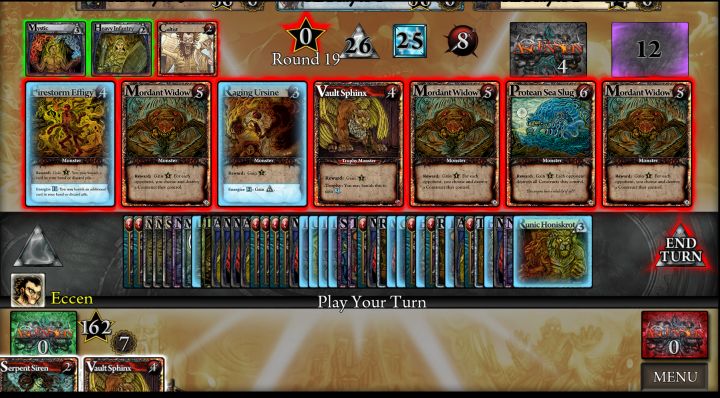 不知不觉居然打出4倍于电脑(困难)的分数!前期用Void控牌,中期抢到了一堆(其实只有19个)Construct,最后! 最后利用Hedron Link Device和Hedron Cannon的combo。加上最后一回合拿到两次Tablet of Time's Dawn。在最后一次输出中将Honor从171打到232。总比分382-93。不仅靠实力还靠运气啊。觉得自己已经可以用DotG+pr
