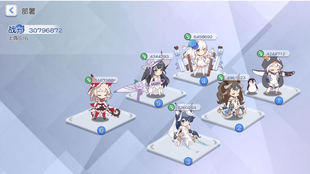 首先先说明一下,我不懂这个游戏的各种机制,也不懂阵容搭配,这个阵容也是按自己理解随便配的,但是用这个阵容少女试炼 云石 五关我是打过去了,每一关都用五个回合左右。 我本来想找找攻略,实在找不到,想着随便试试,结果还挺好用,所以来分享一下,为有像我一样想找攻略找不到又打不过的同胞提供一个思路。 阵容如下图,第一列雪儿 红叶 霜月凌,第二列薇薇安 云石[固定] 春梦或者克萝爱(前三关我用的克萝爱,后面