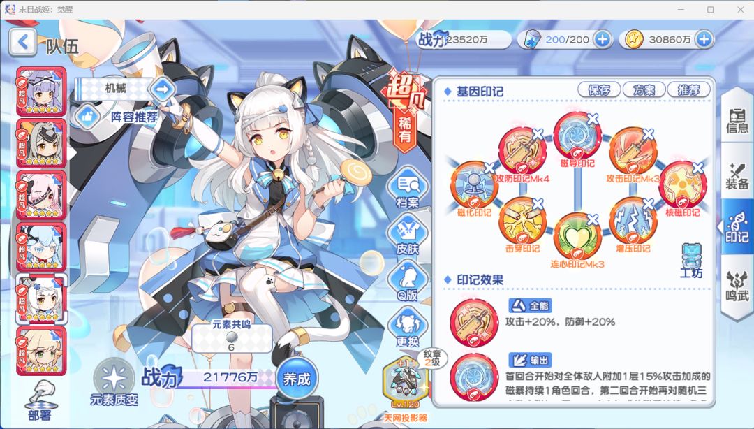 第一回合吞噬异兽吞花王boss,其他辅助负责压两个半血以下小怪血量让影超杀,提供回能和加buff,宠再回能,慕斯拉影让影一回合两次行动(慕斯行动前让影能量最高,你要控下辅助能量和影自身的能量,影带能量印记),可以实现让带怒涛的影出手两次打满伤害(一次满10能量,一次7能量) 第二回合辅助压血线影超杀结束(影有穿透勋章带他,没有就蓄势,同星级优先穿透) 慕斯 影 奥杰三个固定,剩下三个辅助自己搭