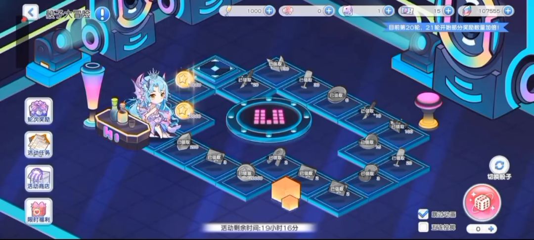 105个骰子+轮次奖励,5轮2个,10轮4个,15轮6个,一共117骰子+2个6点红骰子[表情_期待]平均一个骰子掷出不到3.33点……[表情_捂脸哭]