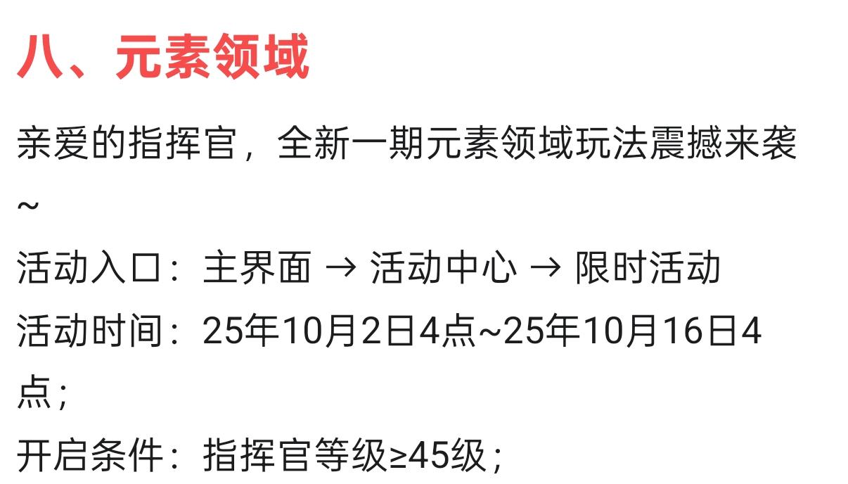开服啦,开服啦~年终返利养生服已正式开启!除了返利和新冒险之外,月鸽也为指挥官们带来了全新的开服活动一览~具体内容,请指挥官们查看下方的长图哦~活动补充【疯狂扭蛋】 开服4~16天抽卡获取:稀有传说共鸣武装、璀璨圣石、中级鸣武强化药水活动调整【虎魄威仪】开服12~19天→调整为开服15~23天开启【暗之祭坛】开服8~14天→调整为开服1~7天开启【光之祭坛】开服