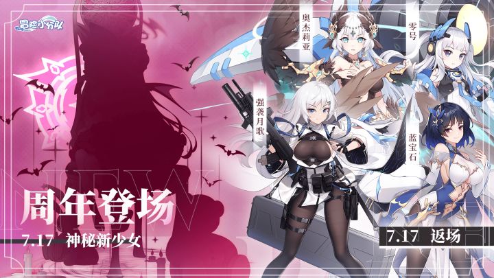 亲爱的指挥官:月鸽带着7月的卡池信息来了咕~以下是大家最关注的周年卡池!神秘的新暗输出少女将隆重登场~除了周年登场的少女外,本月的其他返场卡池如下图,请指挥官查收:另外,月鸽也整理了本月即将上线的优化内容咕~一、少女相关1.少女试炼优化1)新增开服up活动少女的少女试炼2)可以通过返场的少女试炼活动获取到开服up活动少女的插画2