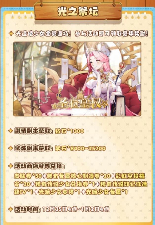 指挥官们中午好年终版本的优化内容已经上线啦~不知道指挥官们是否已经查看过了呢~除了调整和优化以外,作为对2025年冒险的纪念,以及对指挥官们长久陪伴的感谢年终版本自然离不开少女们的祝福!为此,“全少女签到”活动将迎来更新,新增2025年加入的全部少女!承接目前累签次数,指挥官们登录签到即可领取※不包含烛龙曦月与年终新少女赛瑞娜哦~快