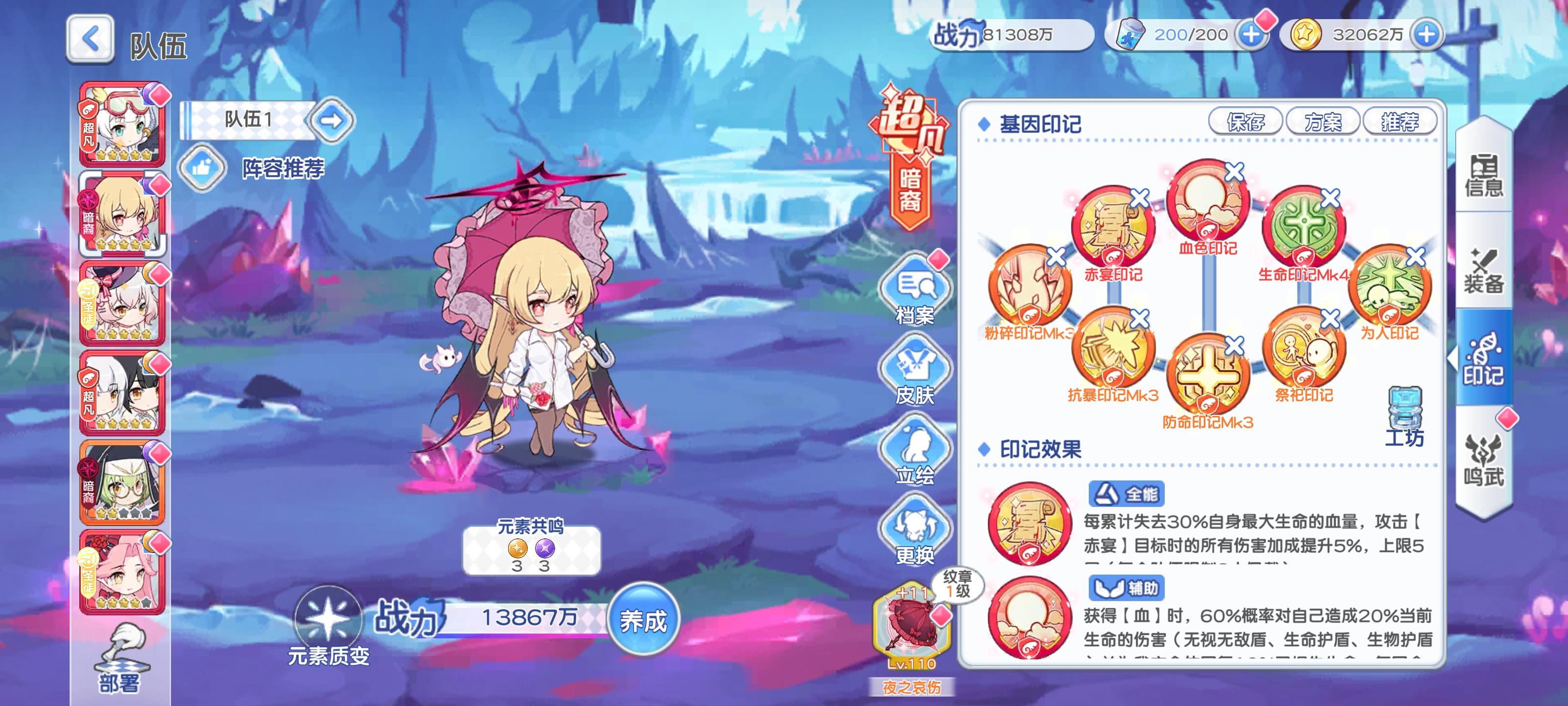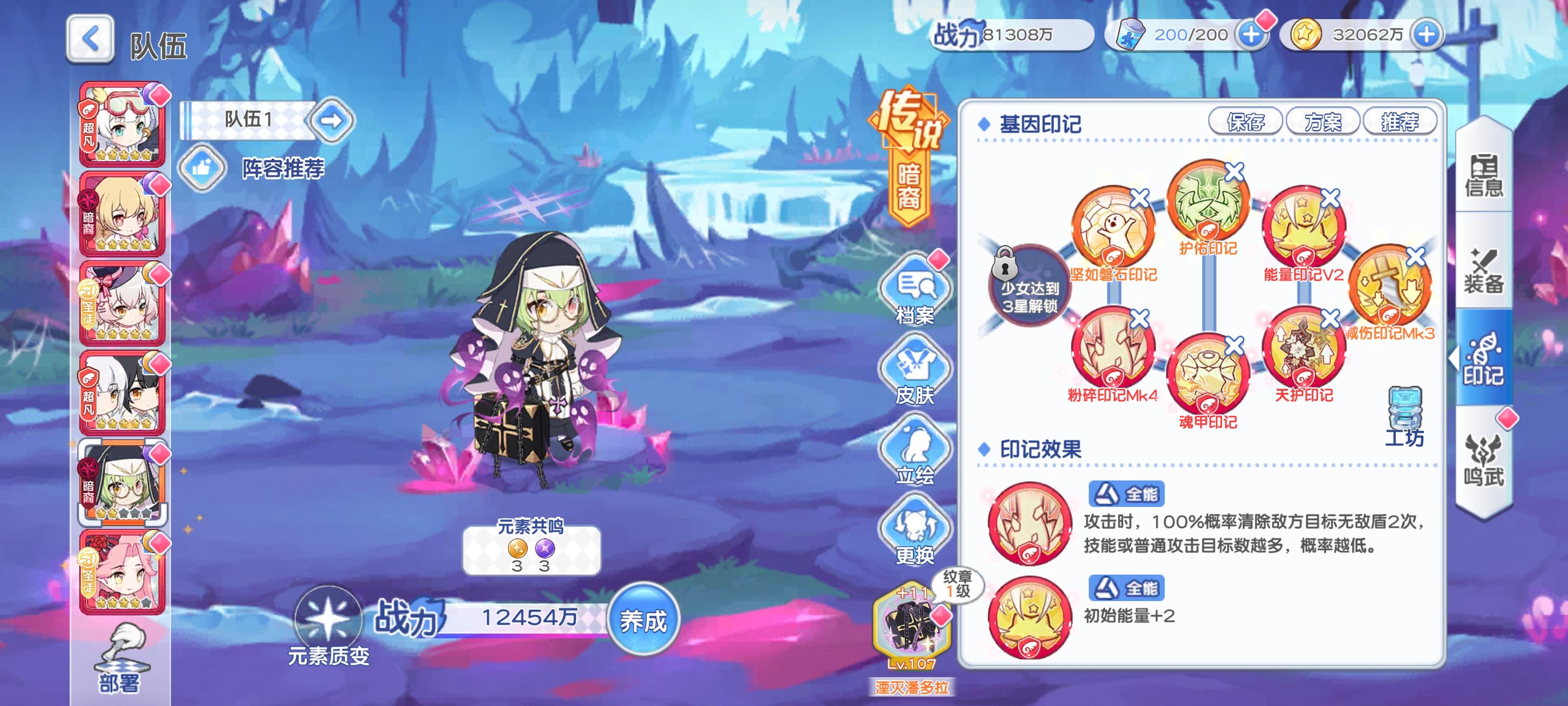 发现有很多人不会打元素650分那关,我也是拿过两期1950了,帮很多人凹过,所以来出一下攻略原理就是650分这关可以无限叠剧毒来击杀,所以有三套简单阵容,实测都能过。光之领域会有点难。阵容道具截图给你们发出来。第一套就是直接53吸血鬼姐妹过,元素一定要点三火三暗,然后注意亚莉莉别带怒涛,让他每次放技能的时候能量够就行了。第二套就是没有亚莉莉的,可以用判罪来代替,质变给赫卡特点就可以了。第三