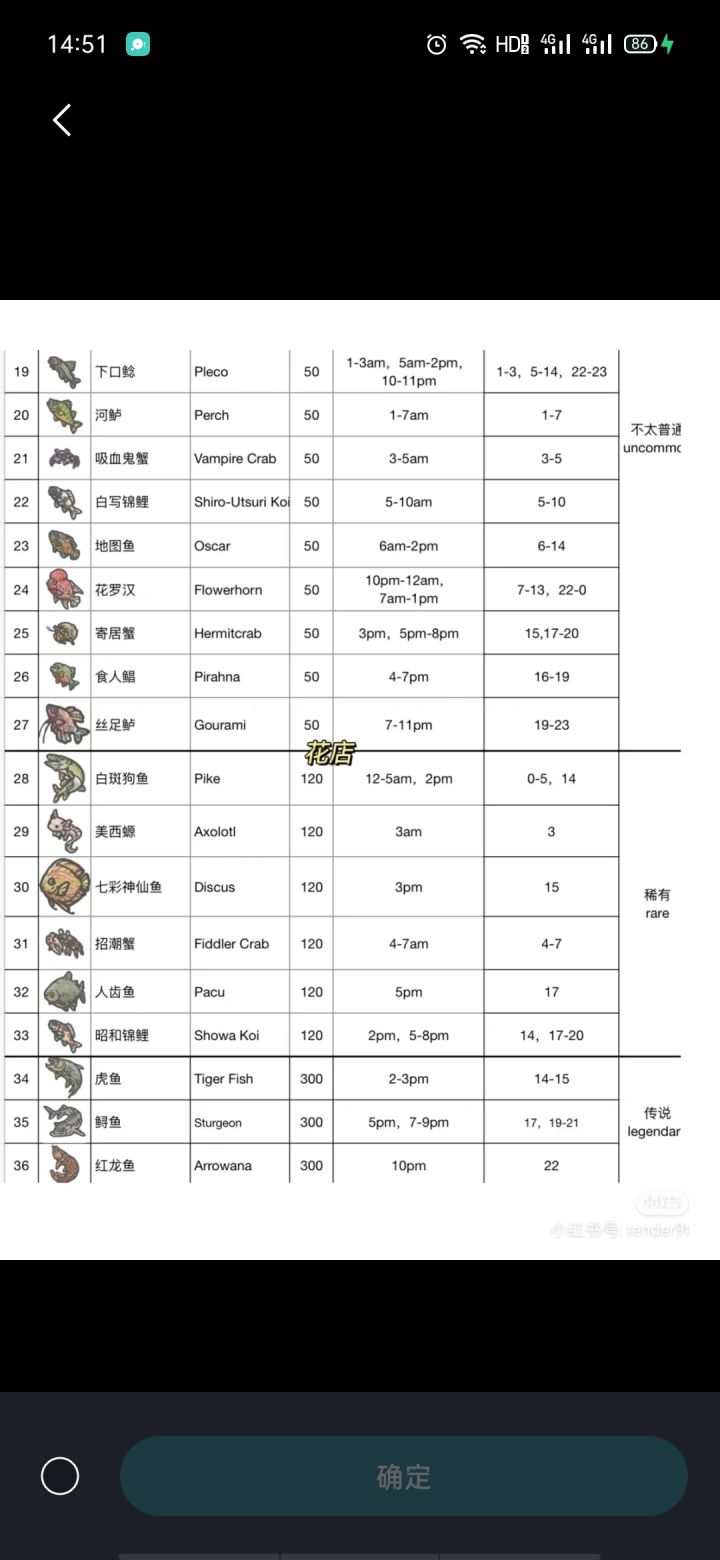 各种海鲜的垂钓时间,以及兑换码