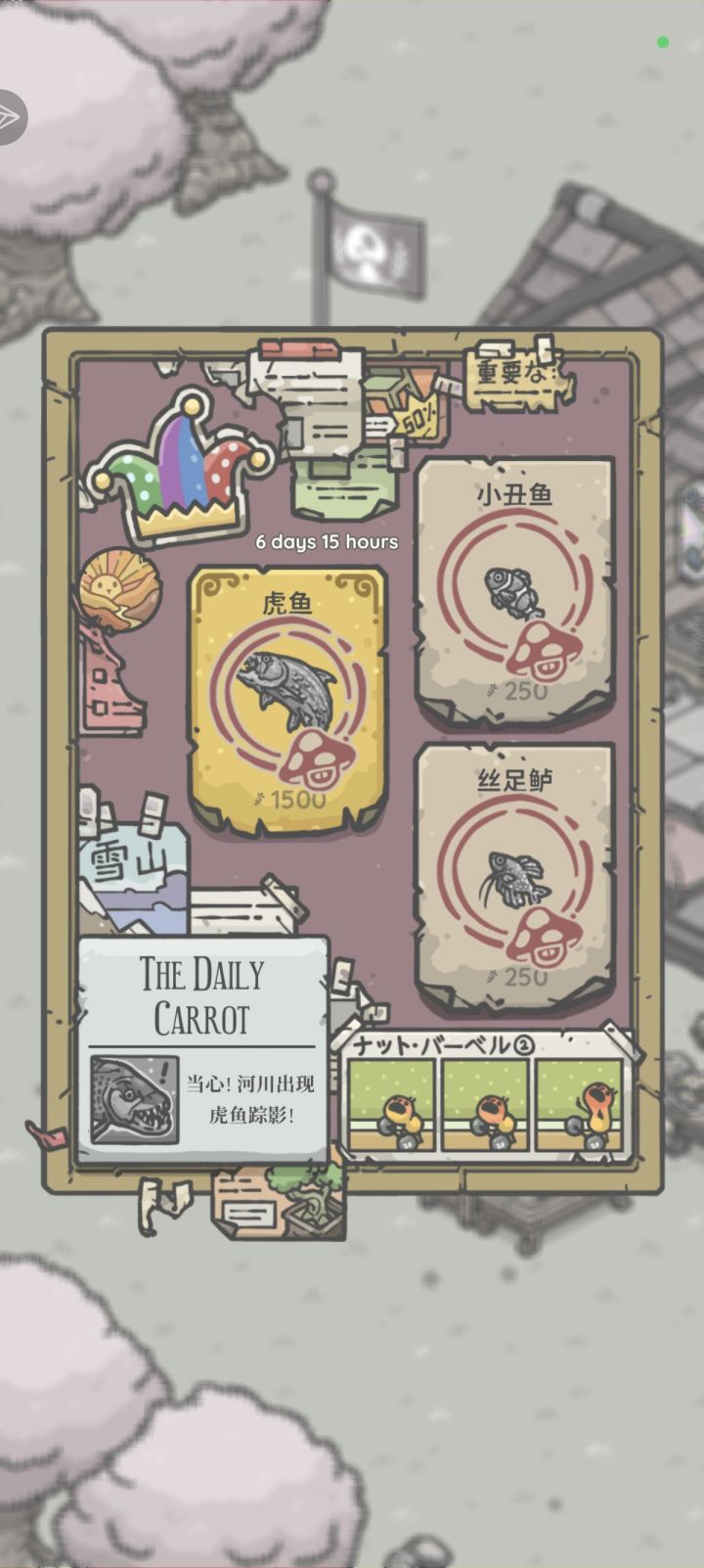#月兔漫游 关于伊氏石斑鱼——是上午09点50分在码头钓到哒!关于乌鳢——是上午11点45分在东安的工具店钓到哒!关于巨型鲶鱼——是上午11点26分在东安的工具店钓到哒!关于双髻鲨——是下午14点09分在码头钓到哒!关于虎鱼——是下午16点18分在东安的工具店钓到哒!关于蓝枪鱼——是上午12点48分在码头钓到哒!关于butterflyfish(蝴蝶鱼)——是上午11点20分在萝丝的花店