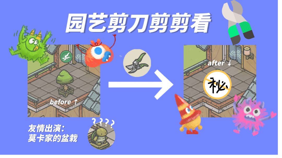 今天在尤里商店买到了园艺剪刀 去莫卡家帮他修剪一下盆栽吧😋 最后发现好像还是原版的那款更好看???
