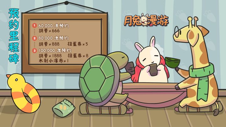 亲爱的小主:《月兔漫游》自登录TapTap以来,受到很多玩家的喜爱和关注,为了感谢各位领主大人对我们的喜欢,今天我们上线了安卓预约里程碑奖励!!!本次预约里程碑设置为3个阶段,分别为6万、8万、10万次预约给予的奖励。累计到达下述图片预约次数,公测时即可收到以下奖励啊!!!白嫖的不能不要啊!(´ρ`)预约经不起等待,领取豪礼就现在,各位领主大人们快带上小伙伴们一起预约吧~预约的同时领主大