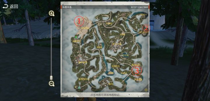 玩了一天,如有错误,望提出!红色字;高危险区(有boss,特殊怪)金色字;强烈推荐必刷的图!蓝色字;中危险区(无boss,少量特殊怪)绿(白)色字;低危险区(只有普通怪)紫色框框;推荐建家的地方,都接近物资点,丧尸和狼都很少!橙色圈;有个小房间,有这个蓝色的花!用枪打一下中间的花果,会触发战斗(换了个新的Bgm)Boss定期会吐出绿色的口气,会吸引周围的丧尸,人物被喷到后会获得中毒!