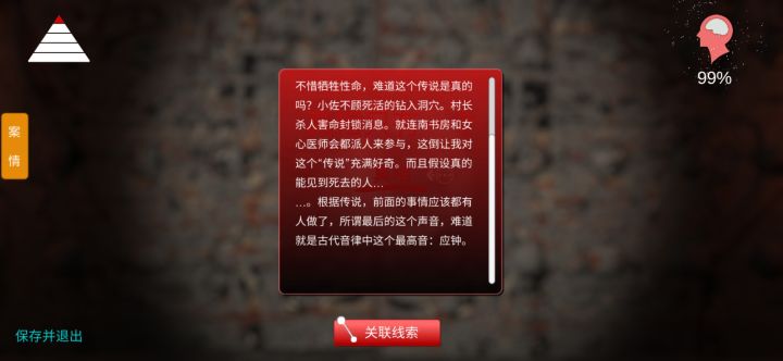 不知道为啥 点击铃铛,现在是应钟并没有出来线索,试过两次,都是99%😂😂