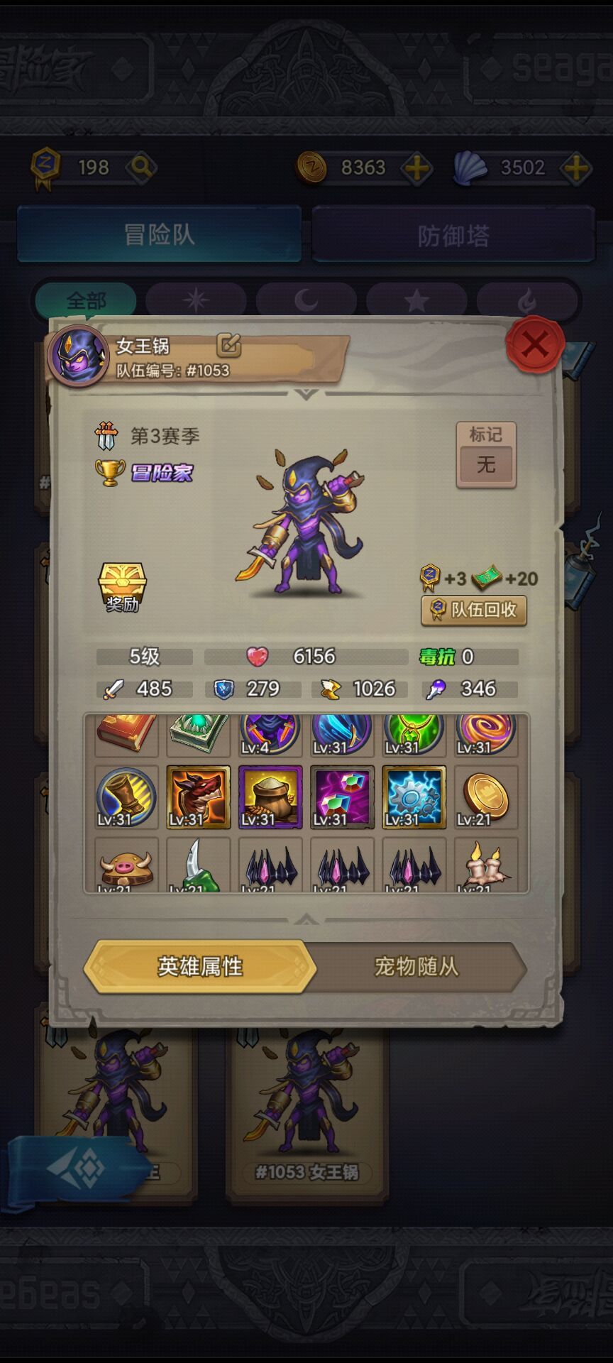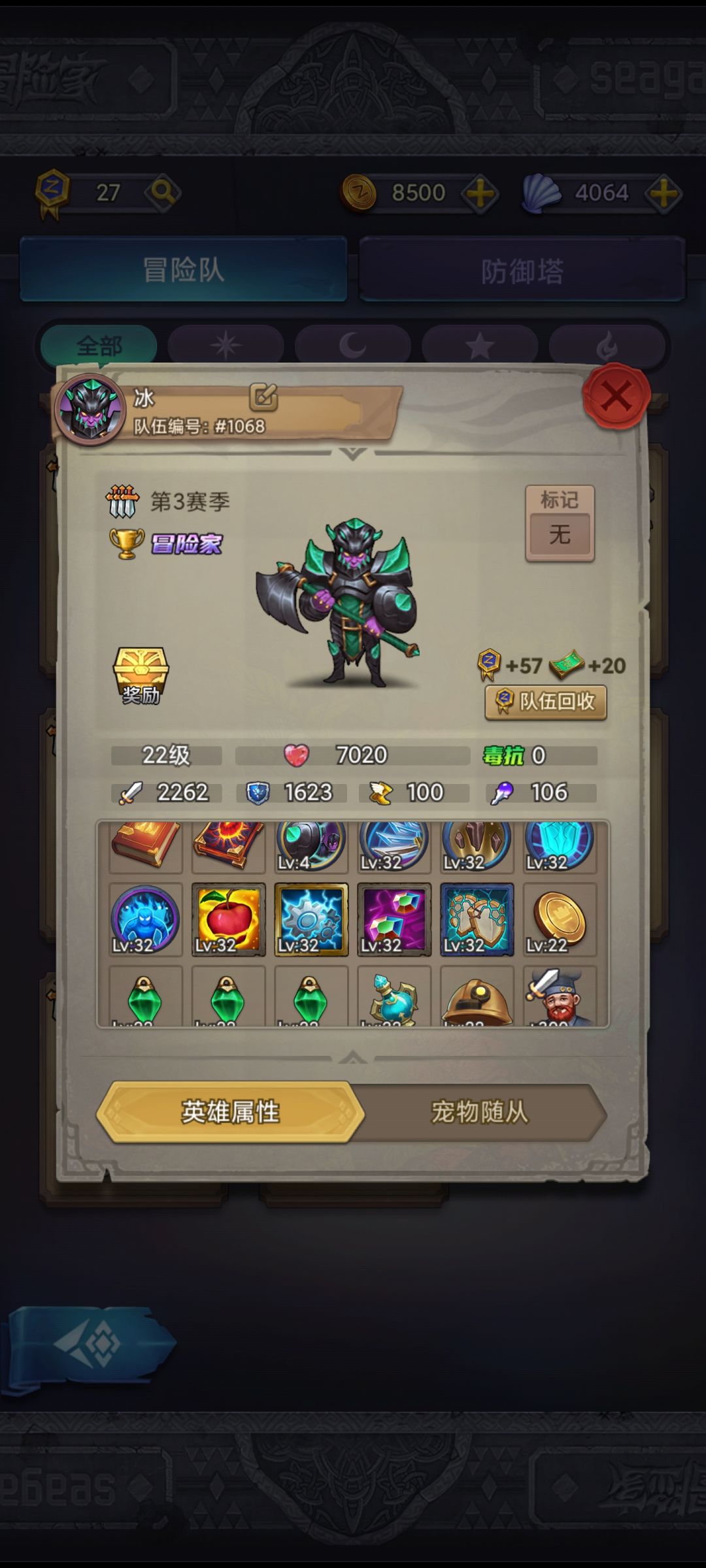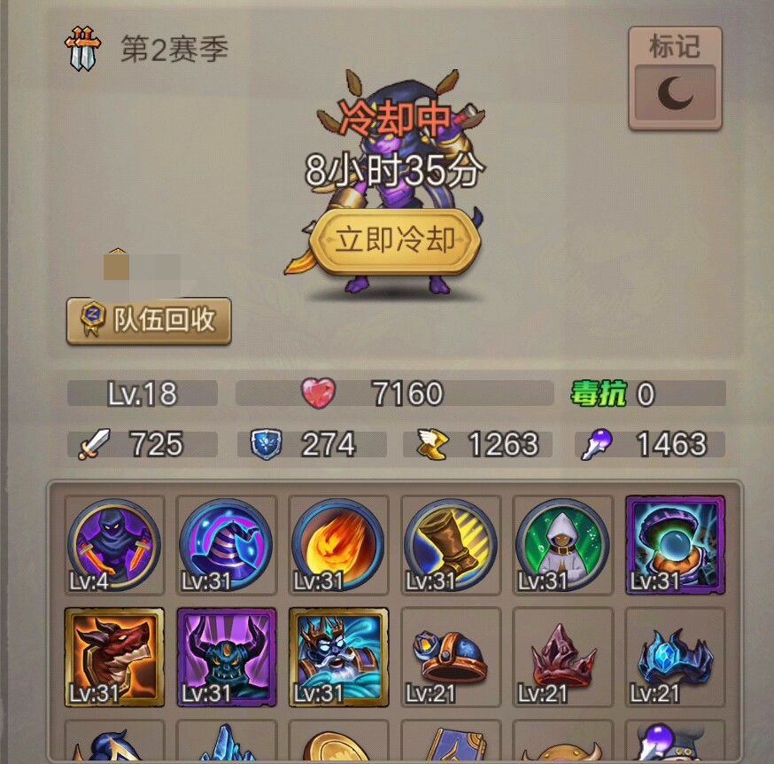 最后根据需求来培养了,想要推塔则高毒抗加遁地双魔晶,打排位则高技能高血量高成长,因为我勋章不多,所以发育的不算好,一般30勋章就可发育的完美