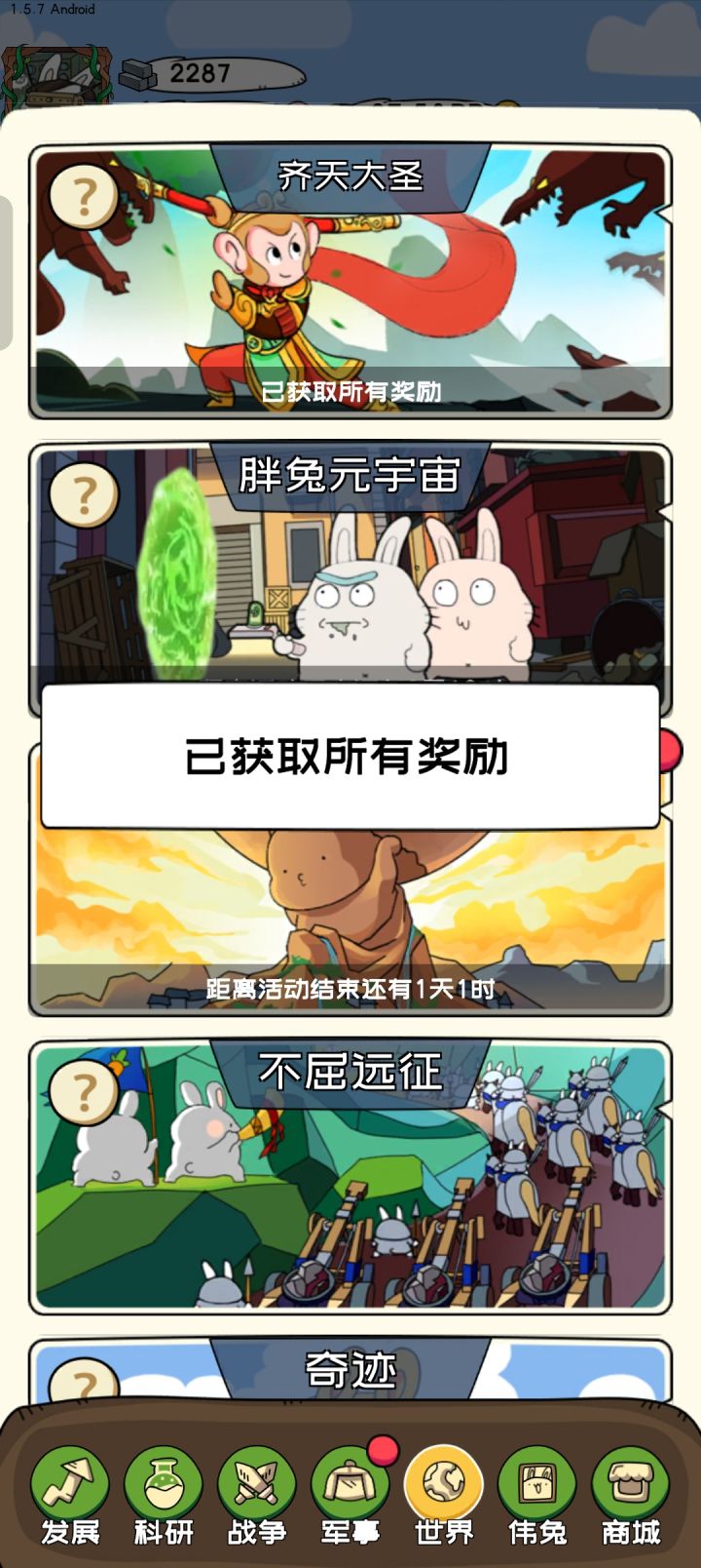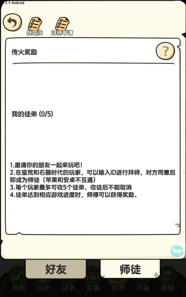 广告:一般加载不出广告的,导致新手前期是无法获取关卡的50钻石与前期发育,旦只需等7天获取老子就可以获取免广告,所以免广告卡是不要充的,多点几次。每日刷新:为5点刷新,只要一登录就把考古全做了,看广告变革研究。之后大退重进,就会发现考古任务与变革重置次数还在而且还有新的任务。(注意不要祭地,会你失去次数而且保底不增加。而且每日也归零了竞技场:除非你够强(伟兔全换完),不要拿第一。之后封建时代你