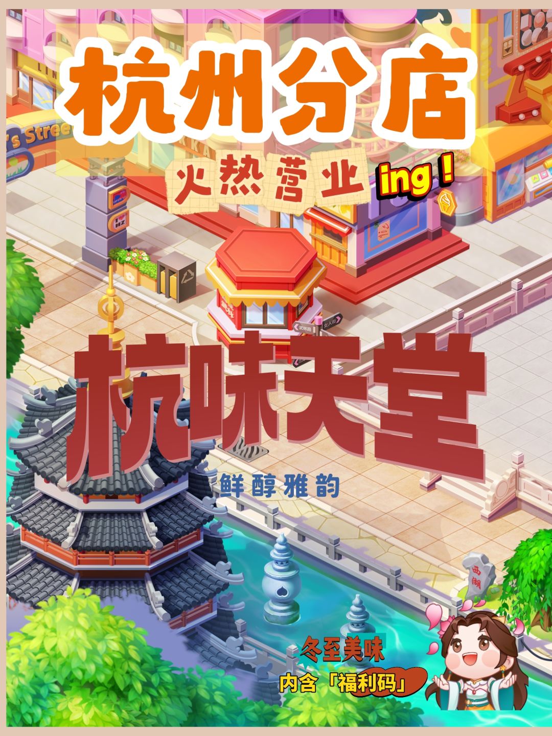 [表情_开心]西子湖畔,鲜味雅韵! 一起来感受杭州的美味营业, 店长的分店事业更上一层楼! 周末福利凯撒放送!! 〓福利加码!美味掉落!〓 ▲福利码【杭味天堂】请店长食用! 内含:{高级寻访币*5 分店传单*10 } 有效期:至12.26有效 杭州的美食菜谱店长解锁了多少了哇 #发现好游戏 #游戏日常 #游戏杂谈 #游戏攻略 #今天游戏圈发生了啥